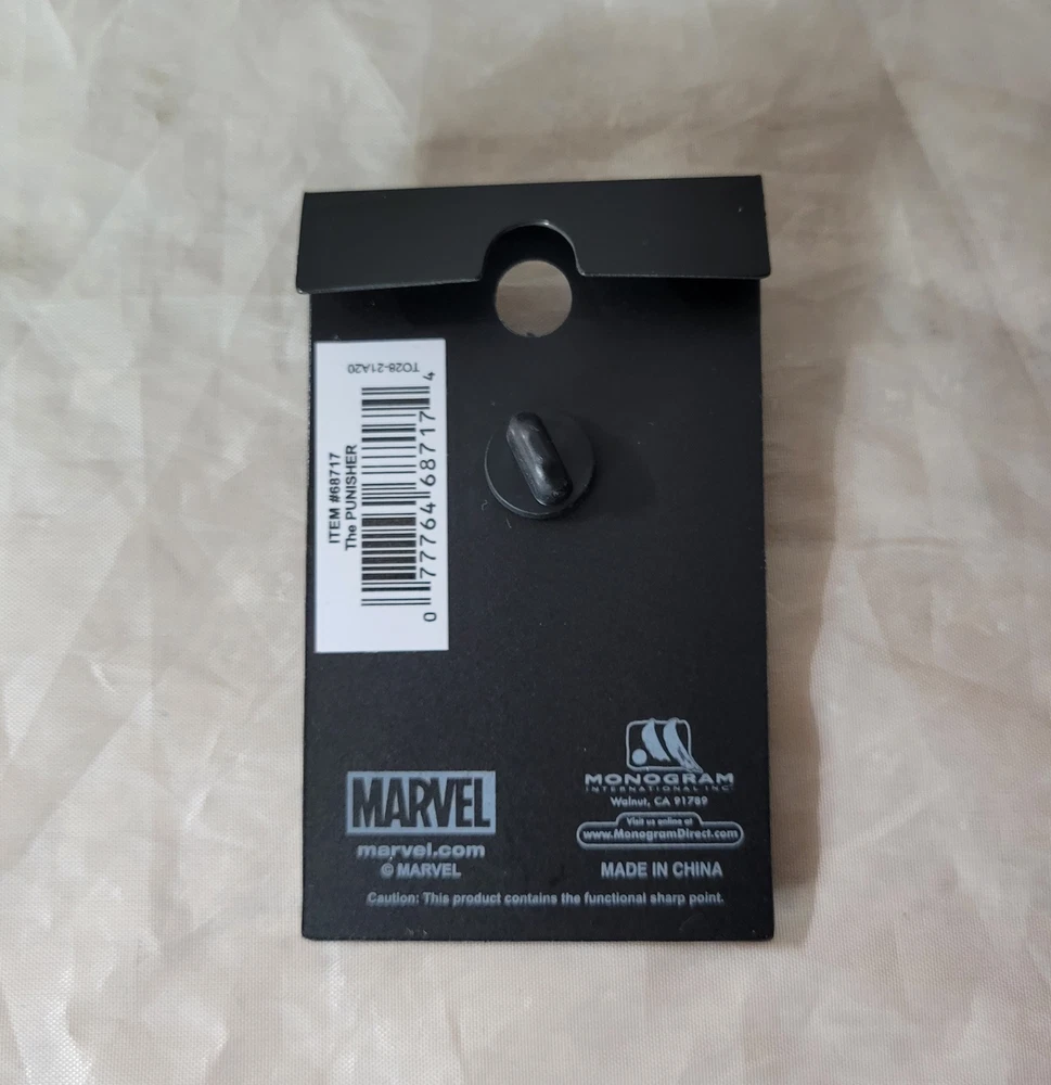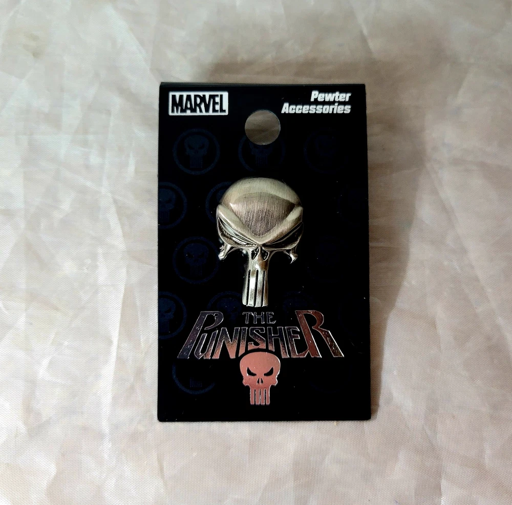 Support your local vigilante! Let Frank Castle know he's not alone with The Punisher Logo Pewter Lapel Pin. Perfect for your backpack, jacket, or lanyard!
