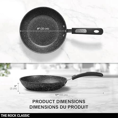 Discover the Unparalleled Cooking Experience with The Rock – Revolutionize your kitchen with the The Rock cookware. Engineered with an extra thick forged aluminum base, this cookware ensures optimal heat distribution for even cooking every time. Experience the magic of our Rock.Tec surface enhancement, a unique manufacturing process utilizing small metal pellet impact technology. This innovative approach transforms the surface into an ultra-durable, rock-like finish, offering an outstanding release performance that's 3 times better than traditional non-stick cookware. Not only does it resist scratches and abrasions, but it's also guaranteed never to warp, ensuring your cookware lasts longer. With a 3-year and compatibility with gas, electric, ceramic, and halogen stovetops, The Rock is the epitome of versatility and durability in your kitchen. Embrace the joy of cooking with cookware that stands the test of time. Key Features: Rock.Tec Technology: Unique surface enhancement for 3 times better release performance than standard non-stick cookware. Durability: 3 times more durable non-stick surface that resists scratches and abrasions. Even Cooking: Extra thick forged aluminum base for optimal heat distribution. Never Warps: Guaranteed never to warp, maintaining perfect shape over time. Versatile Compatibility: Suitable for use on gas, electric, ceramic, and halogen stovetops. : Comes with a 3-year , ensuring long-lasting quality and satisfaction. Included components: item and manual Item shape: Round Ultra-durable 8 inch fry pan