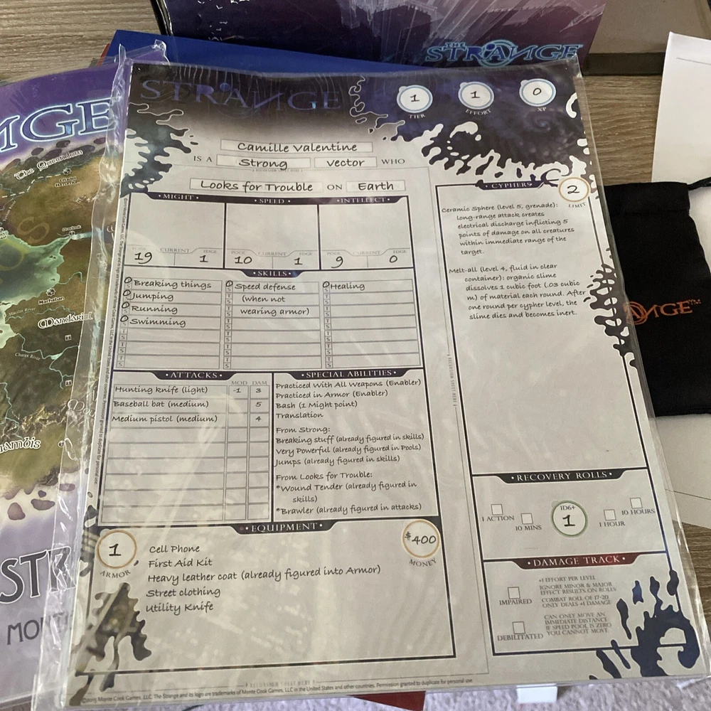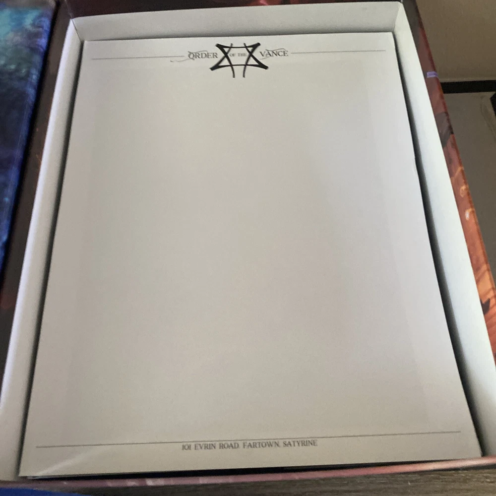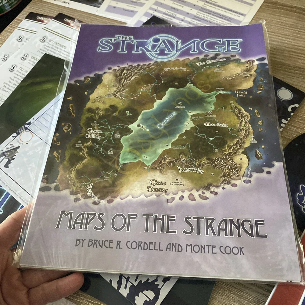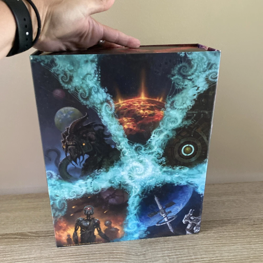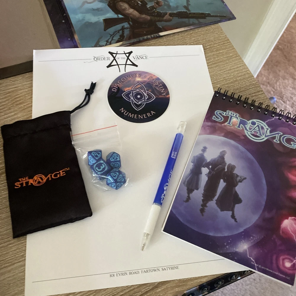 The Strange RPG is where stories, movies, myths, novels and even comics and games come alive in limited alternate dimensions called recursions. Player characters explore these excursions, accumulate treasures and wonders, and defend the Earth from entities they discover who are jealous of - or want to consume - the real world. Recursions float in a medium that scientists call dark energy, but that PCs call the Strange. The Strange was nominated for the Origins Award for Best New Roleplaying Game and received 2 ENnie awards, including awards for best setting, best game and best art. This box set has been opened and does have damage the seal came off but can be glued back and there is a tear on the bottom of the box (see pictures) but all items inside the box are new, all cards are still in original plastic packaging. Please see pictures for all items included in this exclusive box set.