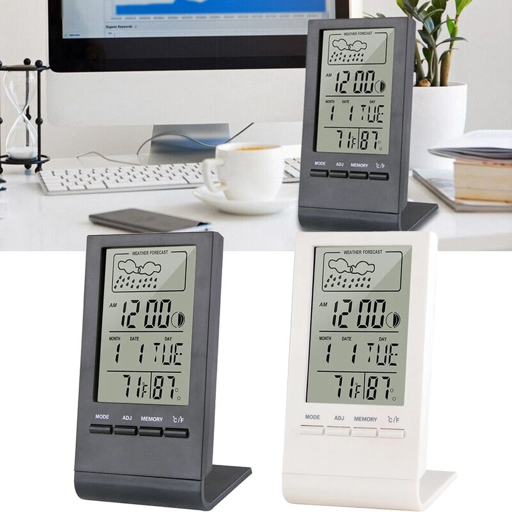 Thermometer Hygrometer Clock Digital Diplay Humidity Meter Indoor Room DESCRIPTION Feature: *<< Great visibility >> A clear LCD display with large numbers, easy to read even from a far distance. *<< ℉/℃ switchable >> Thermometer indoor displays temperature in Fahrenheit or Celsius by button ℃/℉. easy to switch. *<< Professional >> The item measures indoor humidity and indoor temperature in time, great for monitoring family's living conditions and health. *<< MAX & MIN records >> Humidity monitor with indoor thermometer stores and displays all time MAX & MIN humidity and temperature records. *<< Multifunction >> Includes time displaying, date displaying, on time alarm, weather forecast and alarm clock function. *<< Convenient to use >> With table standing, you can put anywhere you want, convenient mounting feature for kitchen, garden, greenhouse, basement, baby room, office and more. Details: Material: ABS Color:white,black Battery: AG10 button cell*1/LR1130 * 1 (included) Temperature range: -50℃~70℃ (-58℉~158℉)/-50℃~100℃ Temperature resolution: 0.1℃ Humidity range: 10%RH~99%RH Humidity resolution: 1% Package Contents: 1*thermometer hygrometer 1*user manual Note: 1. The real color of the item may be slightly different from the pictures shown on website caused by many factors such as brightness of your monitor and light brightness. 2. Please allow slight manual measurement deviation for the data. POLICES Shipping Payment WARRANTY We only ship to confirmed ebay Order addresses. Please comfirm that your Order address is in line with your shipping address. Please kindly note that the c ombined shipping is not provided because the shipping fee is calculated by weight. Also, the each additional item means exactly the the same color and size. It takes about 7 -15 working days to US; about 10-30 working days to other countries. Transit time may be a little delayed because of the bad weather and customs inspection . If you do not receive your item within 30 working days since payment finished, please contact us immediately for further assistance. Payment must be completed within 5 days. If you have any problems about payment, please contact us via ebay message. We strive for 100% customer satisfaction! Positive Feedback is very important to us. If you have any questions, p lease feel free to contact us via "Ask seller a question" . We will reply your email within 24 working hours.