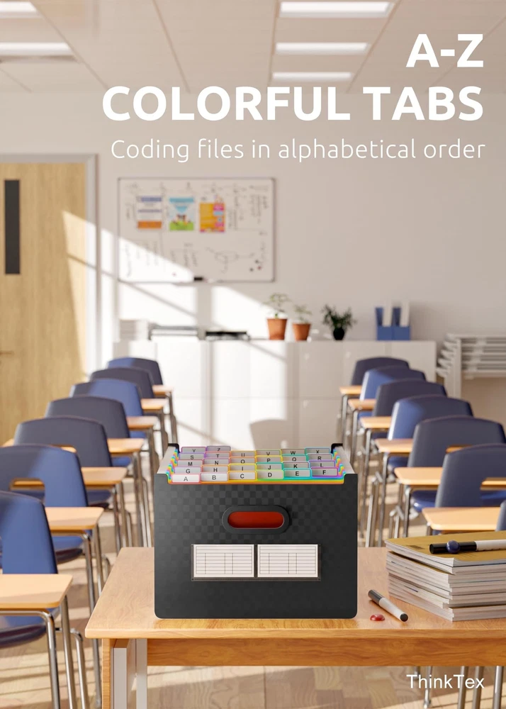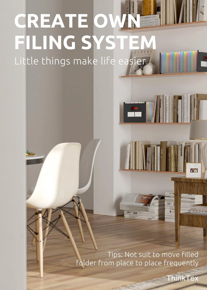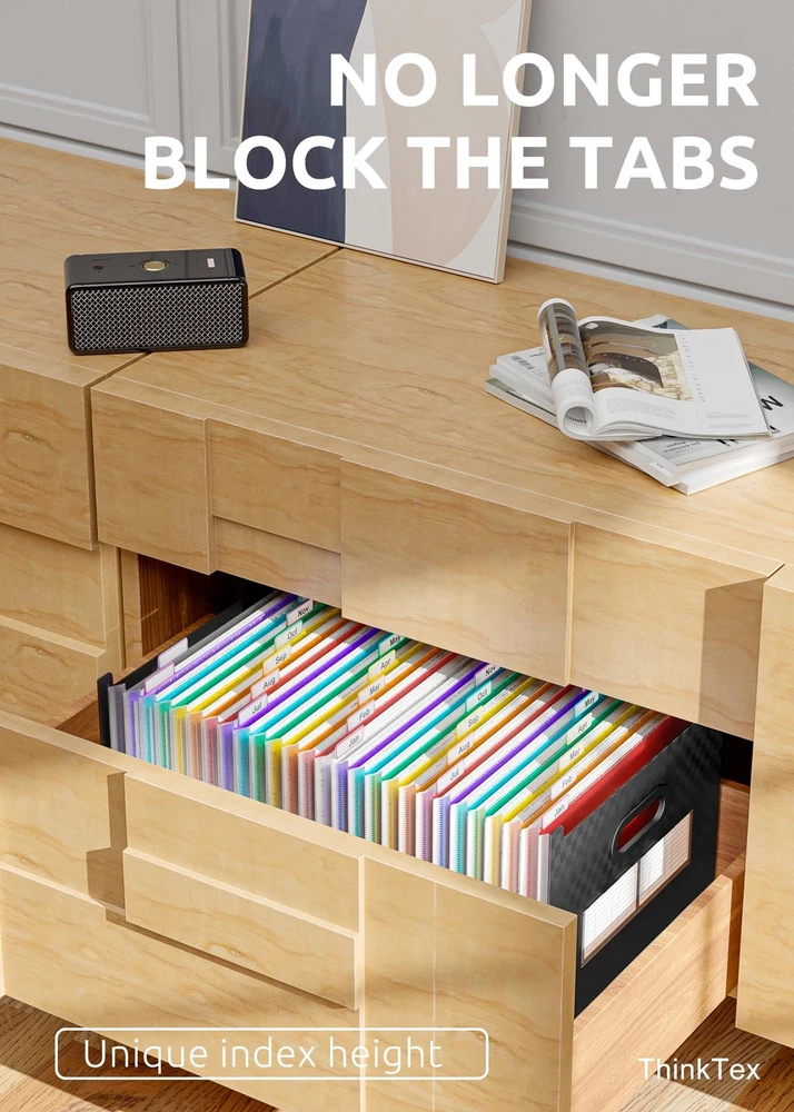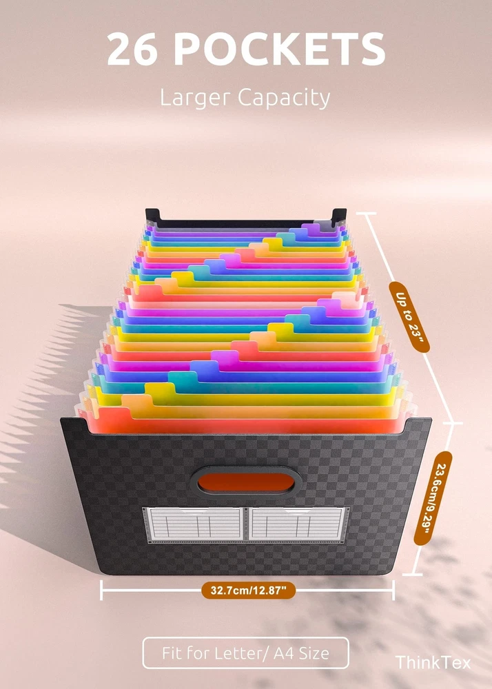 ThinkTex 26 Pockets Expanding File Folder, Upright & Open Top, A-Z Colorful Tabs, Larger Capacity Accordian Folder, Letter/A4 Size for School, Home and Office Product Details Size: 26 Pockets Color: Matt Brand: ThinkTex MPN: 2021 new version UPC: 747966040779 EAN: 0747966040779 Color: Matt Material: Polypropylene (PP) Style: 26 Pockets Brand: ThinkTex Sheet Size: Letter, A4 Manufacturer: ThinkTex Brand: ThinkTex Item Weight: 1.19 pounds Product Dimensions: 13 x 9.4 x 28 inches Item model number: 2021 new version Color: Matt Material Type: Polypropylene (PP) Tab Cut: 1/5 Cut Tab Position: Top Size: 26 Pockets Sheet Size: Letter, A4 Manufacturer Part Number: 2021 new version Date First Available: June 10, 2021 UPRIGHT & EXPANDABLE - ThinkTex Accordion File Organizer, 26 pockets, A-Z multi-colored tabs, Open top, for letter/A4 size LARGE CAPACITY & SPACE SAVER - 26 pockets, full size expansion top & bottom, expand and shrink with growing files flexibly, as small or large as a want it EASY ACCESS - No cover and no hamper, open top and A-Z colorful Tabs, coding files in alphabetical order FREE-STANDING - Polypropylene (PP) material, more thicker, sturdy and durable. Perfectly standing in your drawer, closet or cabinet Tips: To keep the file organizer balanced and standing, Please don't store bulky files on just one side. (Not suit to move filled folder from place to place frequently)