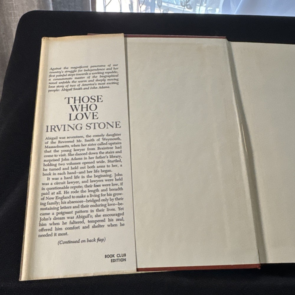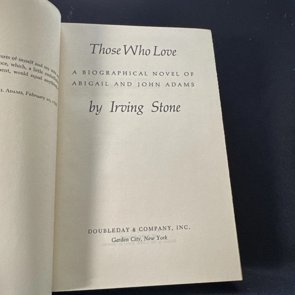 "Those Who Love: Biographical Novel of Abigail and John Adams" by Irving Stone is a vintage hardcover book published in 1965 by Doubleday Religious Publishing Group, T.H.E. The novel, signed by the author, offers a fictionalized account of the lives of Abigail and John Adams, making it a unique and personalized piece for adult readers interested in general history and nonfiction narratives. With features like a dust jacket and being a first edition, this book is a valuable addition to any collection for those who appreciate historical and biographical literature.