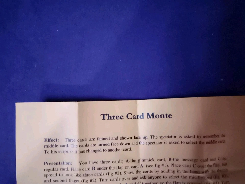 This set of three playing cards is perfect for any magic trick enthusiast. The cards feature the iconic bicycle blue backs deck, with a blank ghost card added for an extra touch of mystery. The packet is perfect for carrying the cards around, and the bicycle design adds a unique touch to the classic Monte deck. These cards are made in the United States and are sure to impress any audience with their intricate design and magical appeal. Whether you're a seasoned magician or just starting out, these cards are a must-have addition to your collection.