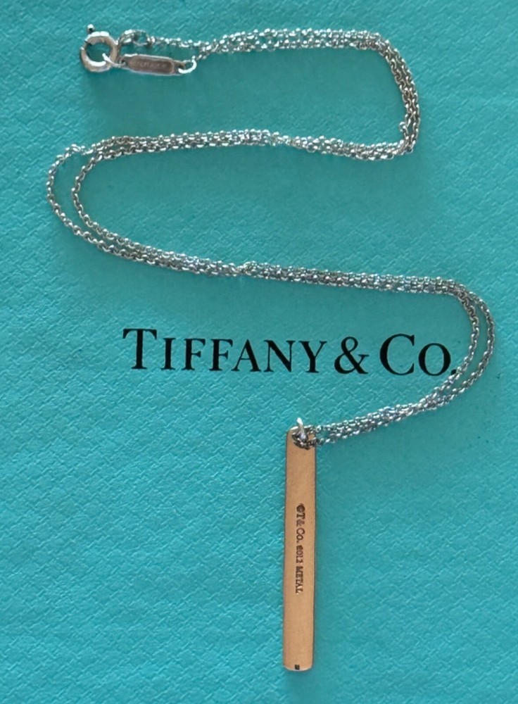 Tiffany & Co. 1837 Necklace Sterling Silver 925 & Rubedo Metal 1837 Bar Pendant. Necklace Measures approx. 16" No box or pouch. All Our Tiffany & Co. Items are Authentic.