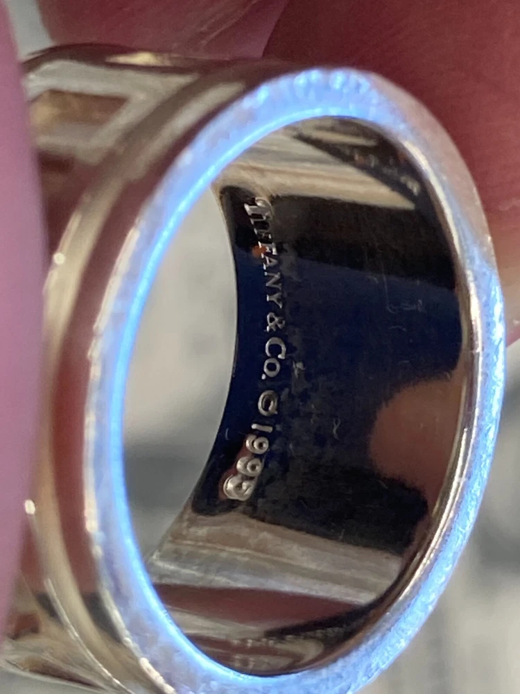 Tiffany & Co. 1995 Sterling Silver .925 Atlas Ring US Size 7.5 includes ring as shown has wear and scratching - see pics heavy wear near III on band - see pics **US Shipping Only** w/ tracking number Check out our Store