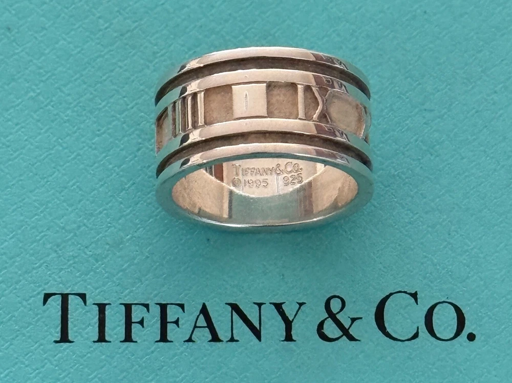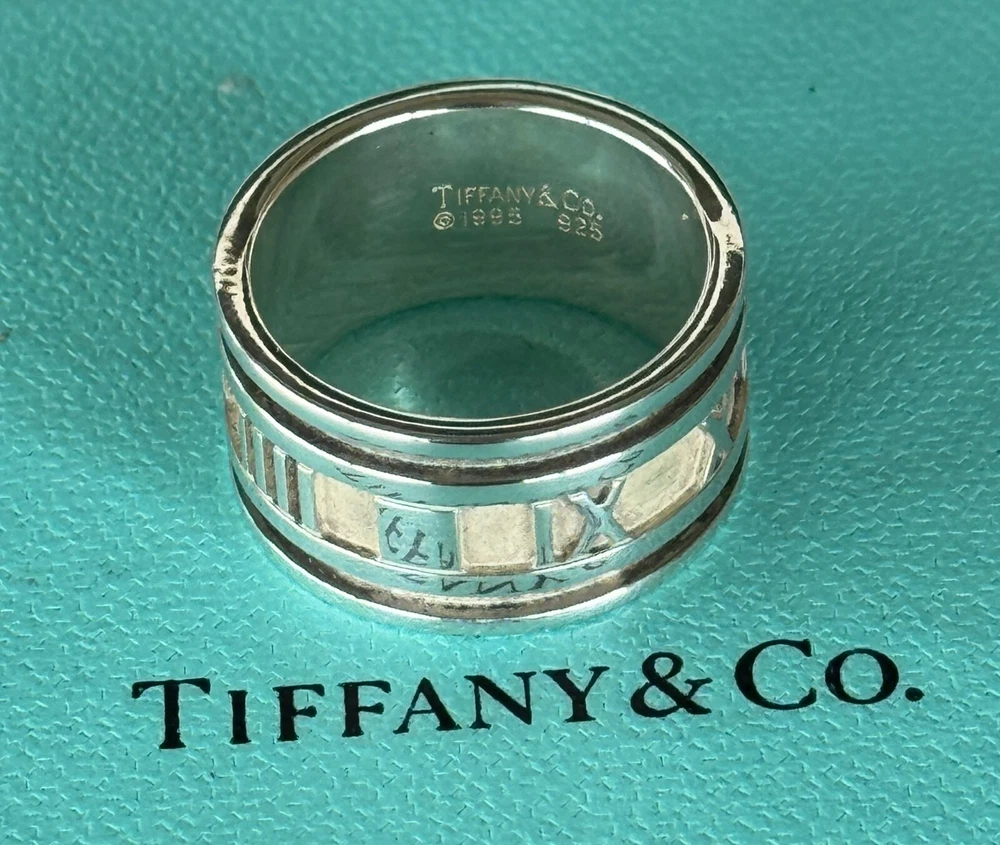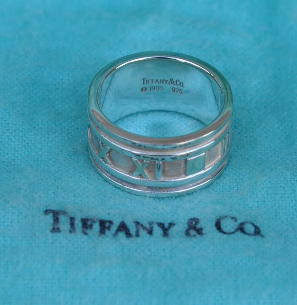 Tiffany & Co Wide Atlas Roman Numeral Ring. Sterling Silver 925. Size 9 1/4 US. No box or pouch. All Our Tiffany & Co. Items are Authentic.