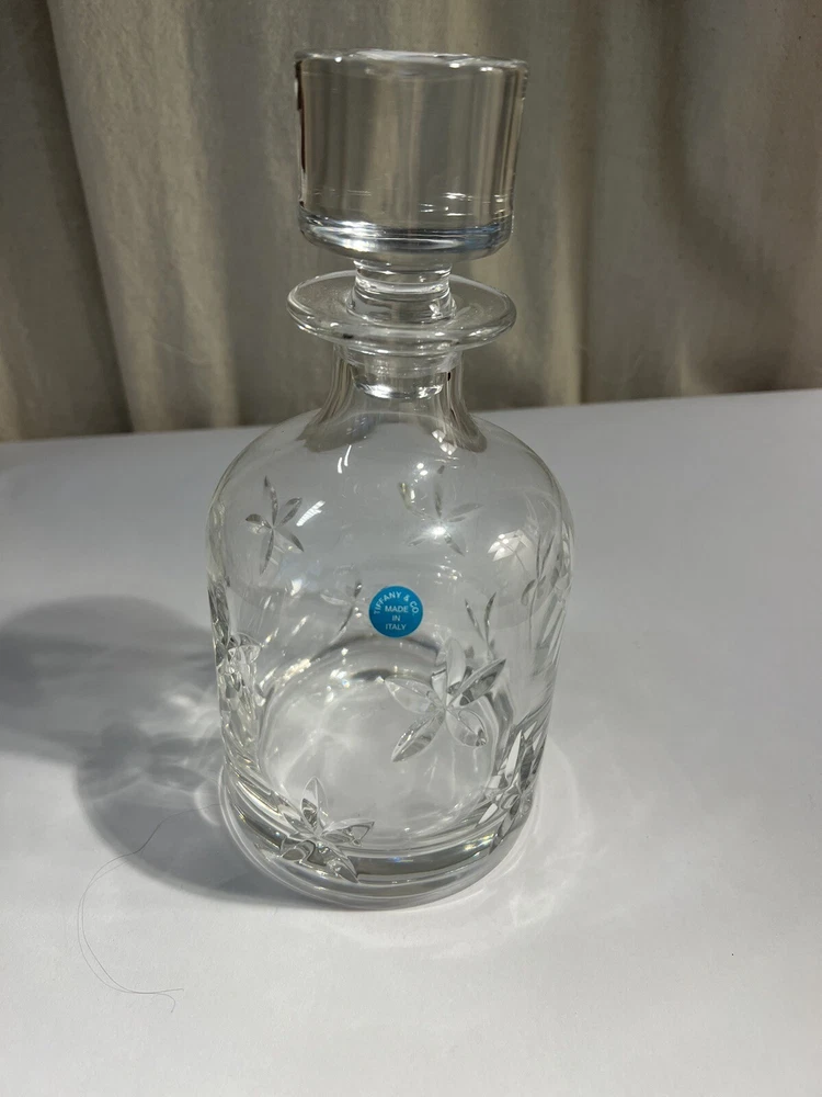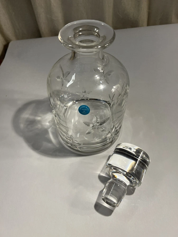 Exclusive Whiskey Decanter. A modern decanter for the young professional. Sip and relax while enjoying the sparkle of your cut crystal decanter. No one does it better than Tiffany and Co This Tiffany & Co. crystal decanter is a beautiful addition to any collection. Made from high-quality crystal and featuring the iconic Tiffany & Co. branding, this decanter is perfect for serving your favorite drinks to guests or as a decorative piece in your barware collection. The craftsmanship and attention to detail put into this decanter make it a true work of art.