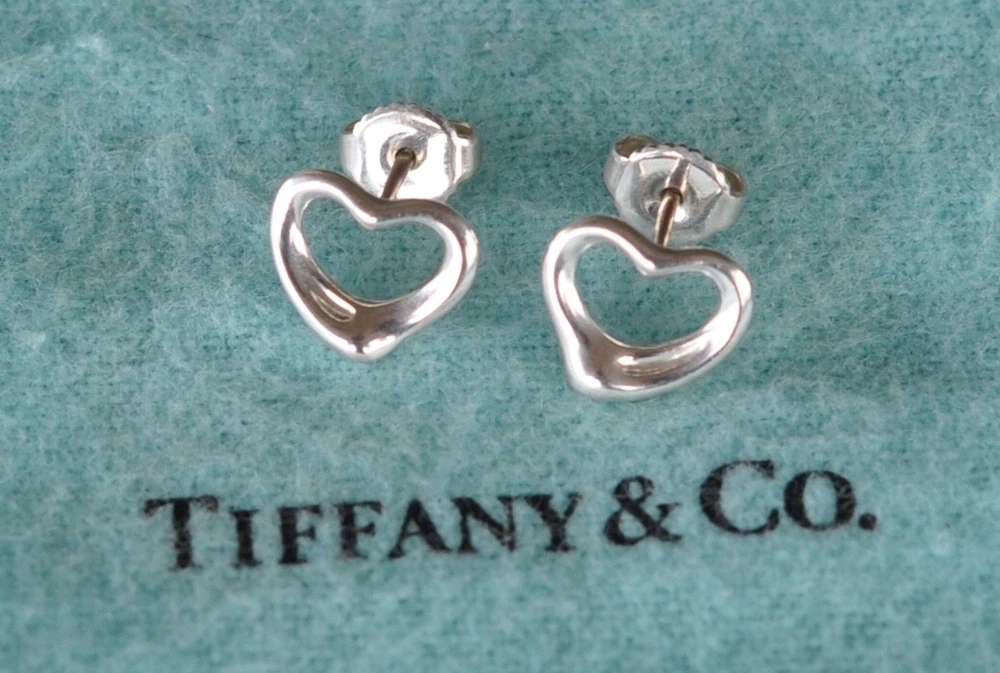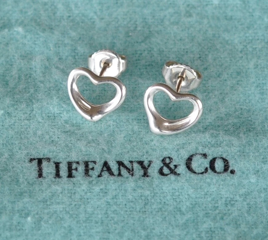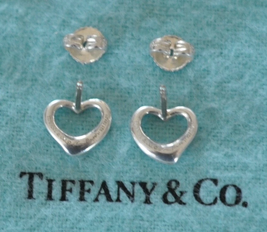 Tiffany & Co. Elsa Peretti Open Heart Earrings. Sterling Silver 925. The friction backs are stamped T & Co. 925. No box or pouch. All Our Tiffany & Co. Items are Authentic.