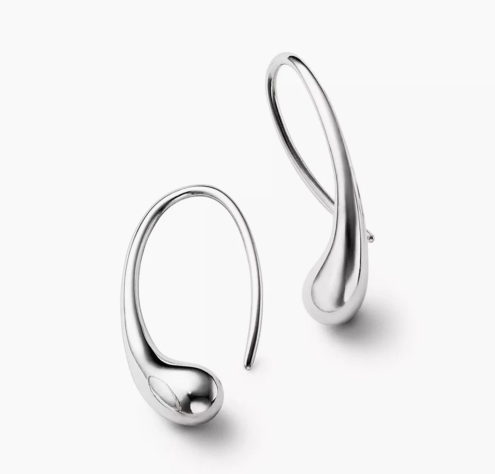 eBay Authenticity Guaranteed. Reminiscent of a solitary raindrop or a shining bead of morning dew. Hoop earrings in sterling silver, for pierced ears. Original designs copyrighted by the Nando and Elsa Peretti Foundation.