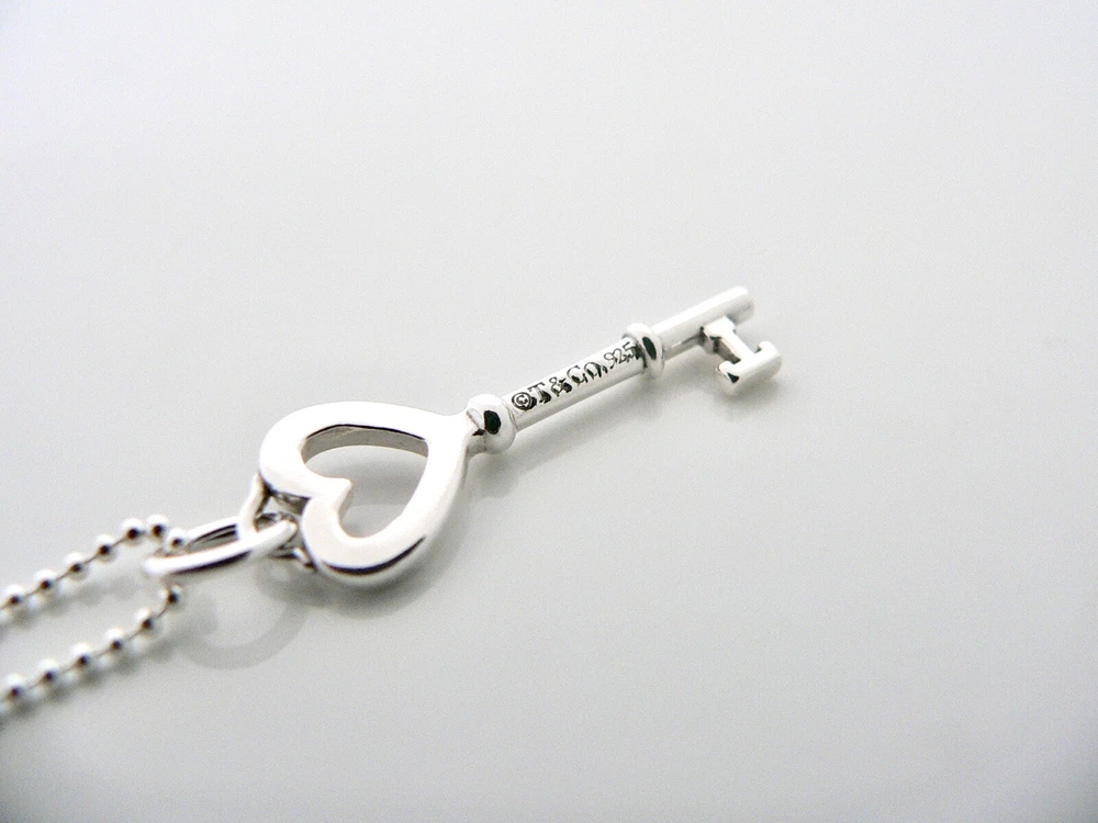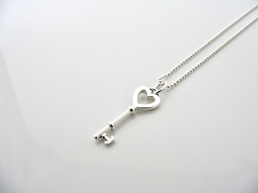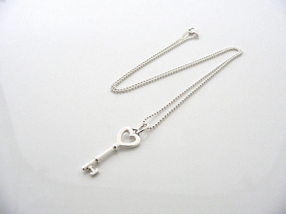 Overview: Offered for sale is a fantastic and very pretty Tiffany and Co. Sterling Silver Heart Key Necklace. Wonderful necklace that fits a lifestyle on the go -- the necklace can be worn to almost any occasion! Hanging from its beautiful Tiffany & Co sterling silver bead chain is a very pretty Heart Key pendant. It is simple and yet looks extremely elegant. Perfect way to say "Here's the key to my heart :)" without ever having to say a word - believe me, she will know! :) Imagine the piece with your professional office attire ... Now imagine it with jeans or weekend wear ... Perfect in every way! The item is very comfortable to wear, and is in very good condition. A classic Tiffany piece to start or add to your collection. Both key pendant and chain are fully hallmarked and guaranteed to be 100% authentic. Wonderful present for yourself or anyone you love! Will surely delight! Particulars: Size & Measurements: The key pendant is approx 1.25 inches. The chain is 18 inches long. Metal & Hallmarks: T & Co. / 925 (on key pendant) Tiffany & Co. / 925 / AG (on chain clasp) Solid 925 sterling silver Please check out my other unique and interesting Tiffany items on sale.