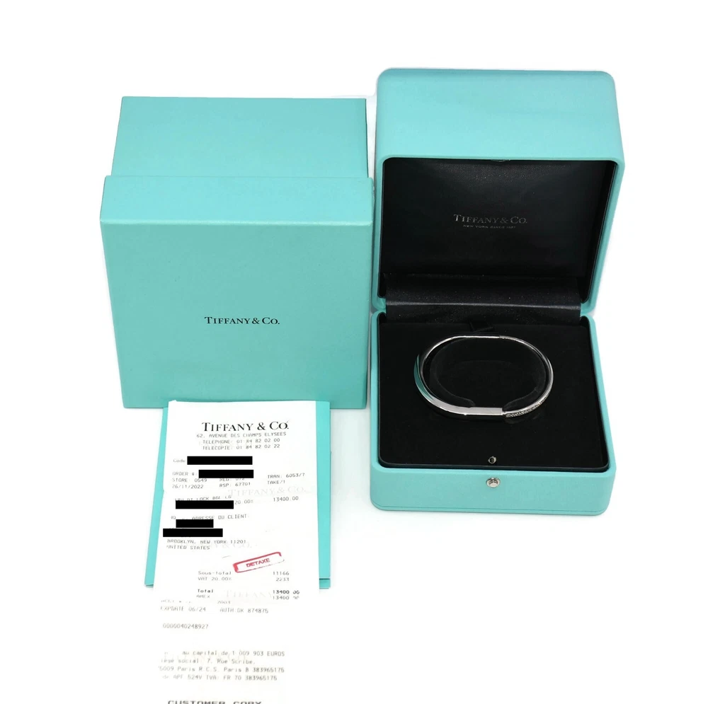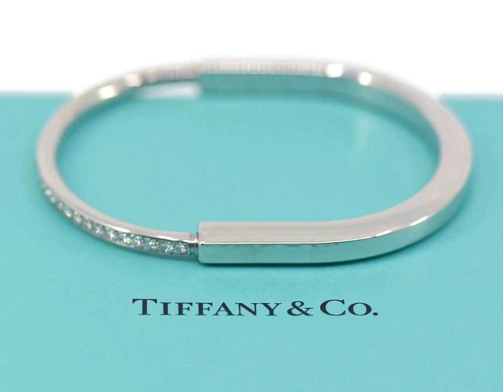 TIFFANY & CO LOCK DIAMOND 18K WHITE GOLD BRACELET SIZE:LARGE WIDTH:6MM WEIGHT:37 GRAMS SKU:11-24/3 COMES WITH PURCHASE RECEIPT 100% AUTHENTIC WITH BOX