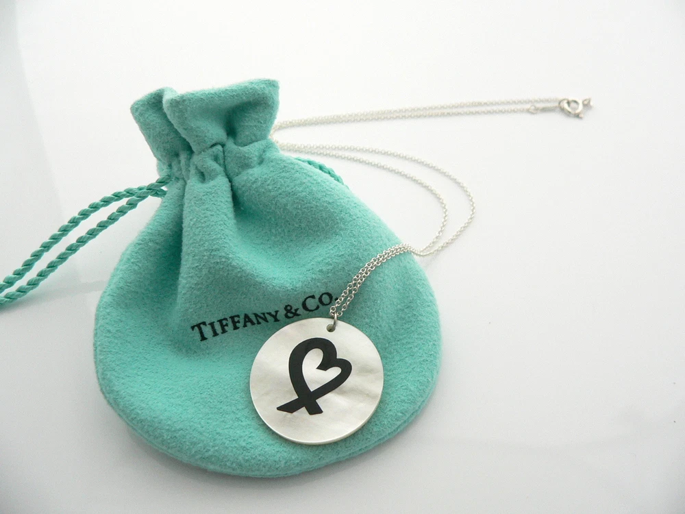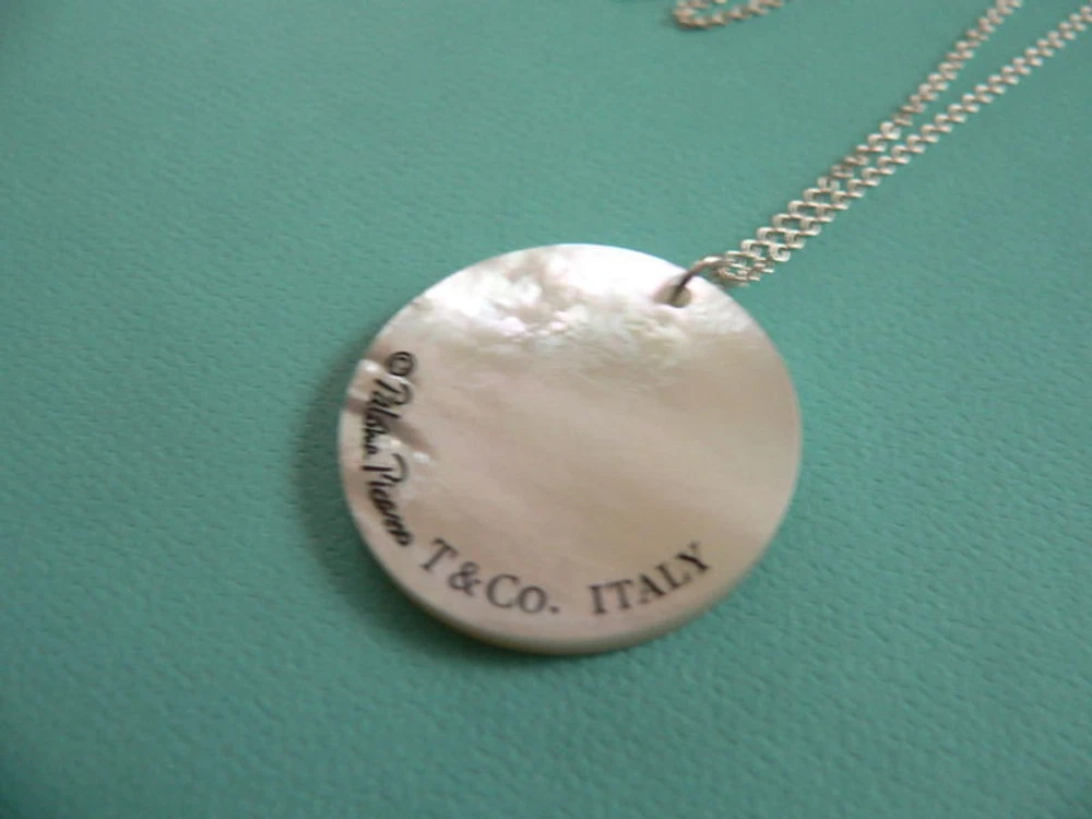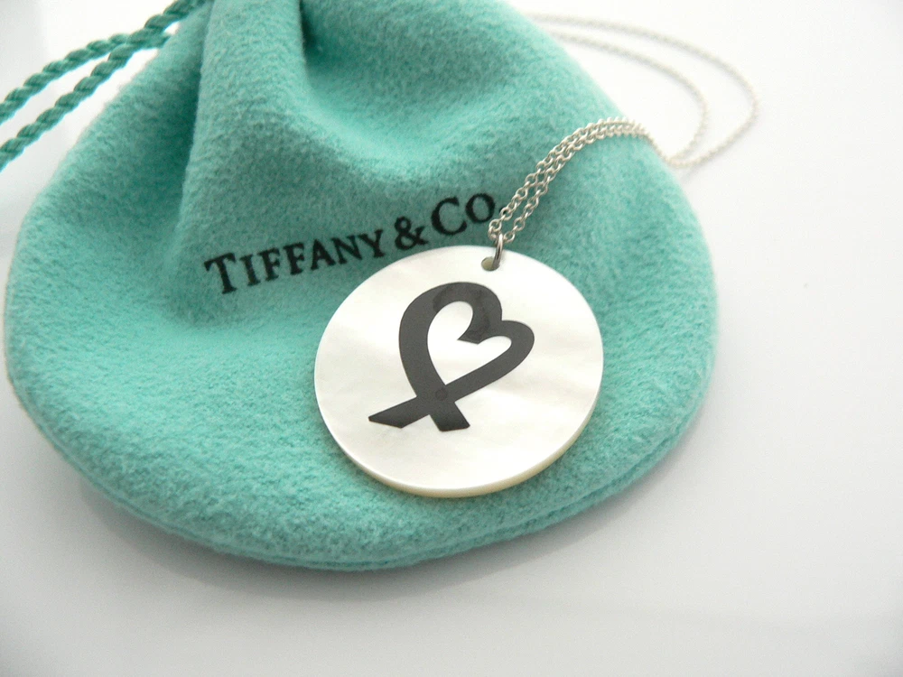 Overview: Everyone needs a signature Tiffany piece! Here is the perfect one just for you - and it's a very rare and special limited edition! Offered for sale is a wonderful Tiffany & Co. Sterling Silver Paloma Picasso Loving Heart necklace. The chain is crafted from bright and substantial Tiffany silver, but the charm is made with Mother of Pearl - super cool and chic piece! Beautiful, bold, and just awesome Tiffany! It is just like wearing a piece of art on your neck - without the super high price :) It is a wonderful necklace that fits a lifestyle on the go, and can be worn to almost any occasion! The piece is simple, elegant, and classic all rolled into one. Imagine it with your professional office attire ... Now imagine it with jeans or weekend wear ... Perfect! The necklace is very comfortable to wear, and is in mint condition. It is one of THE classic Tiffany piece to start or add to your collection. As it is a limited edition and no longer in production, you will be one of the few to own this piece - so grab it while you can! As always, the item is fully hallmarked and guaranteed to be 100% authentic. It will come with its Tiffany pouch as shown! Perfect and ready for gifting! Wonderful present for yourself or anyone you love! Will surely delight! Particulars: Size & Measurements: The necklace is 16 inches from end to end. Metal & Hallmarks: T & Co. / Paloma Picasso / 925 (on chain) T & Co. / Paloma Picasso / Italy (on pendant) Solid 925 sterling silver and Mother of Pearl Please check out my other unique and interesting Tiffany items on sale.