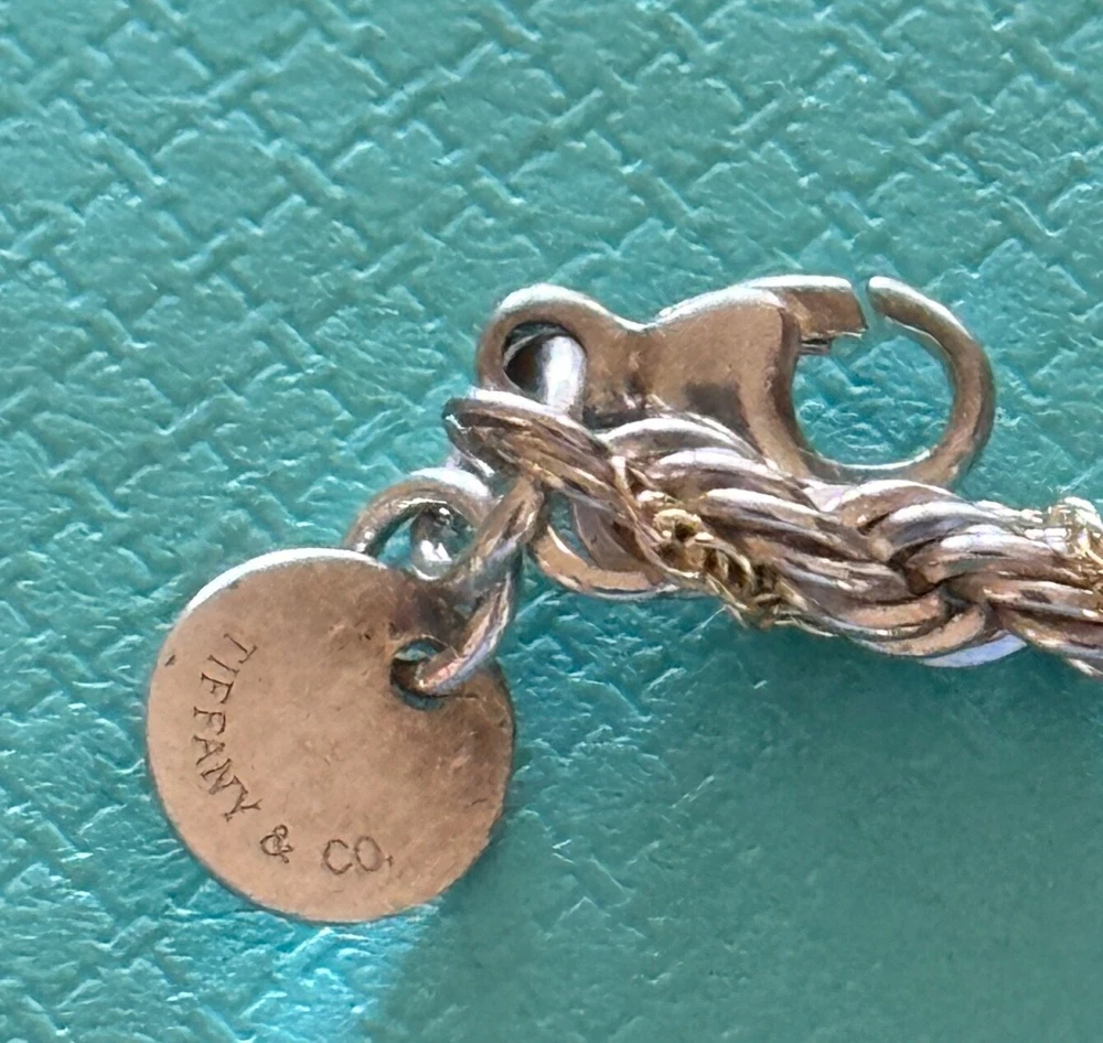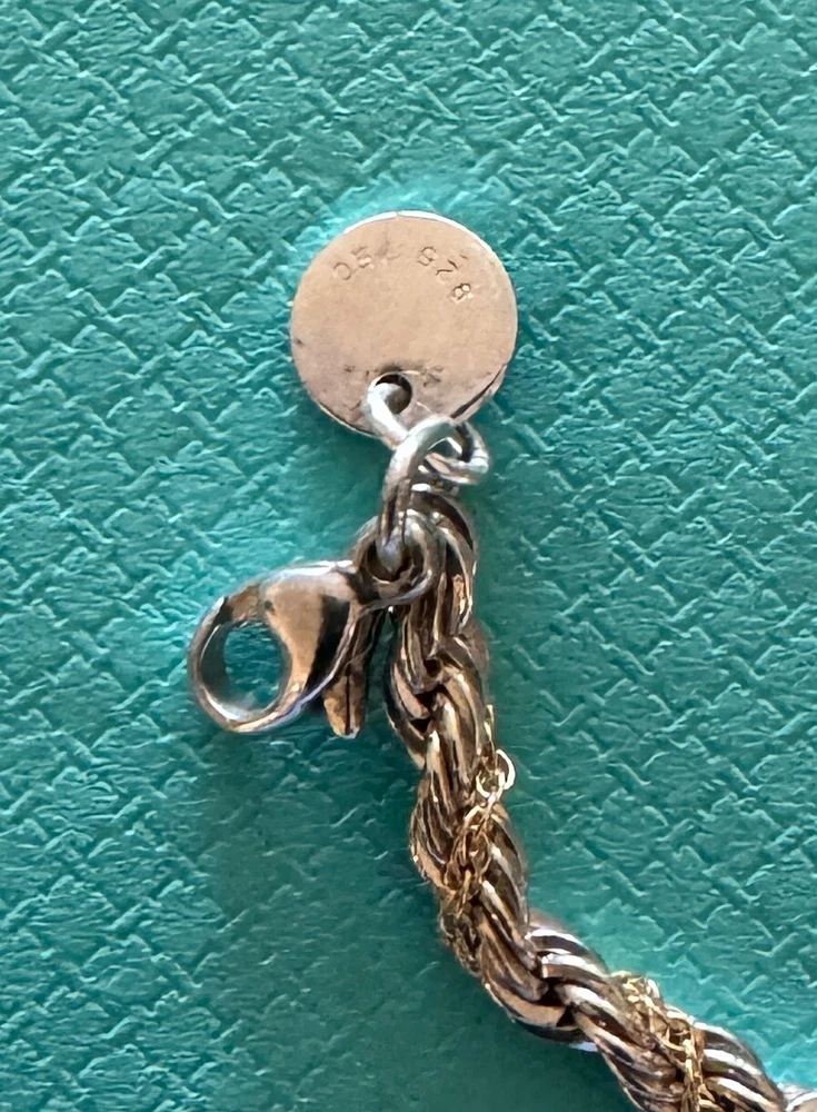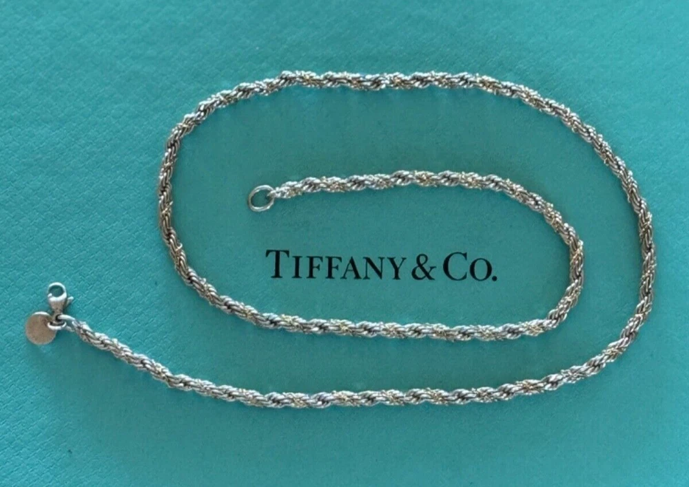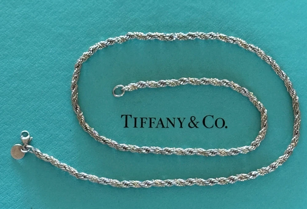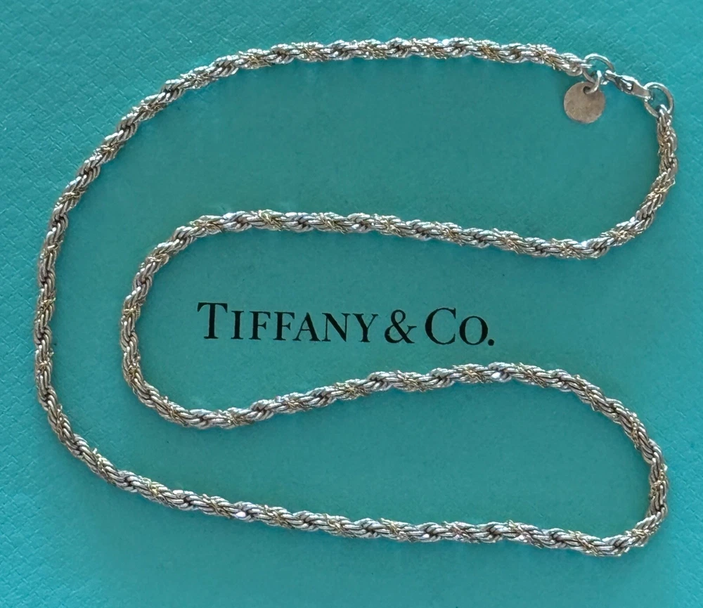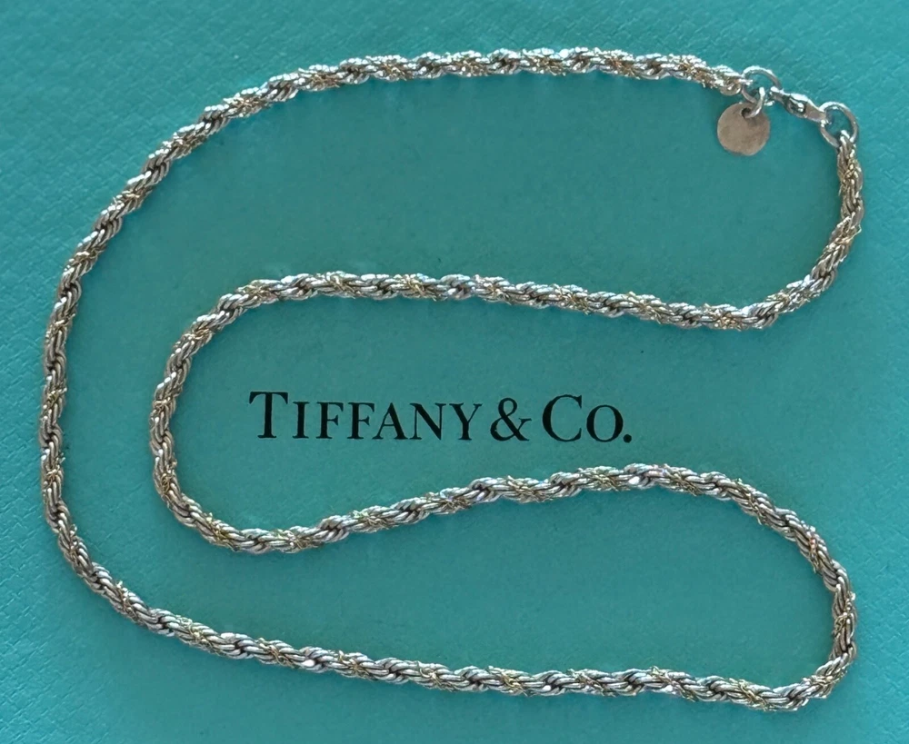 Tiffany & Co Rope Link Necklace. Sterling Silver 925 & 18k Gold. Approx. 3mm wide. Measures approx. 18". No box or pouch. All Our Tiffany & Co. Items are Authentic.