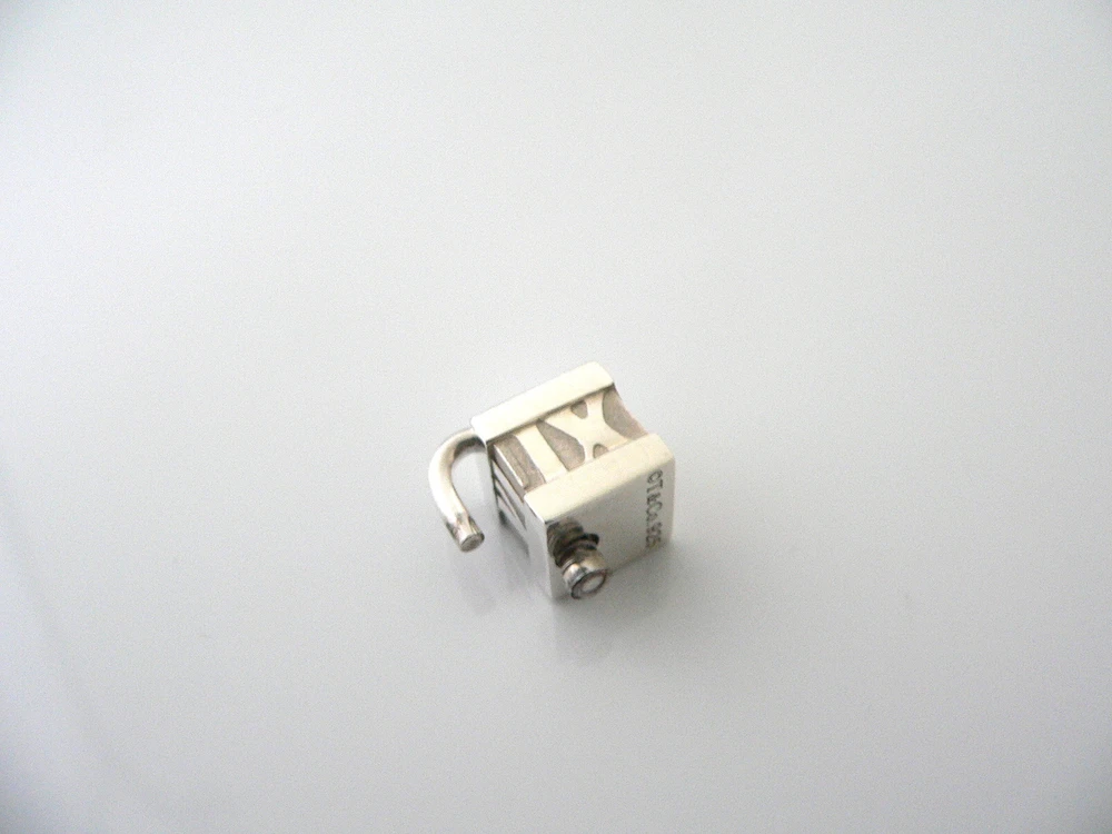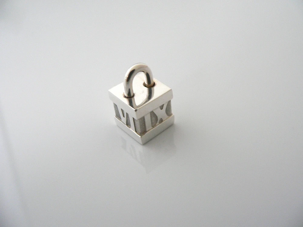 Offered for sale is a wonderful and rare Tiffany & Co. Sterling Silver Atlas Cube padlock pendant / charm. The padlock opens and closes. Super versatile charm that you can add on to any necklace or bracelet ... Perfect item to show off your "Tiffany" style! The piece is simple, elegant, and classic all rolled into one item. It is a wonderful Tiffany piece to start or add to your collection. No longer in production, the piece is perfect for the collector! As always, the item is hallmarked and guaranteed to be 100% authentic. Particulars: The charm is a tad less than 0.6 inches long (including the U shape). Metal & Hallmarks: T & Co. / 925 Solid 925 sterling silver Please check out my other unique and interesting Tiffany items on sale.