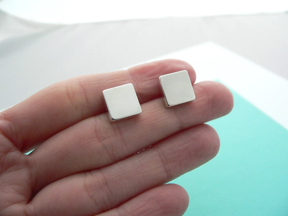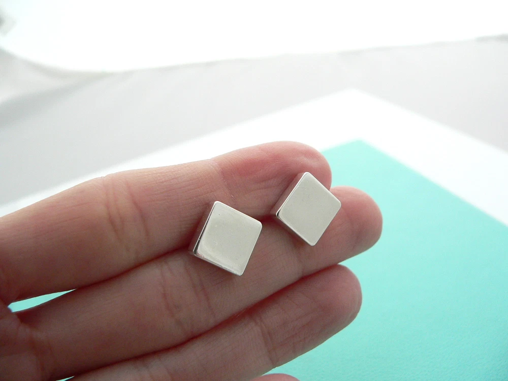 Overview: Offered for sale is a wonderful pair of Tiffany & Co. Sterling Silver Square / Diamond earrings. The earrings are very pretty, elegant, and classic all rolled into one ! Turn it one way - and they are Square Earrings ... Turn it another way - and they become Diamond Shaped Earrings! It's like a two - in - one pair! :) Works perfectly with pretty much any attire your put on, AND adds a nice feminine touch to it. It is a wonderful pair of earrings that fits a lifestyle on the go -- they can be worn to pretty much any occasion! Imagine the piece with your professional office attire ... Now imagine it with jeans or weekend wear ... Perfect! The earrings are very comfortable to wear, and are in very good condition. No longer in production, it is perfect for the collector. It is a perfect Tiffany piece to start or add to your collection. As always, the item is hallmarked and guaranteed to be 100% authentic. Wonderful present for yourself or anyone you love! Will surely delight! Particulars: Size & Measurements: The super versatile earrings are approx. 0.4 inches each. Metal & Hallmarks: 2002 / Tiffany & Co. / 925 / Italy (on earrings) Non-Tiffany Sterling Silver Flower earring back (Marked - 925) Solid 925 sterling silver Please check out my other unique and interesting Tiffany items on sale.