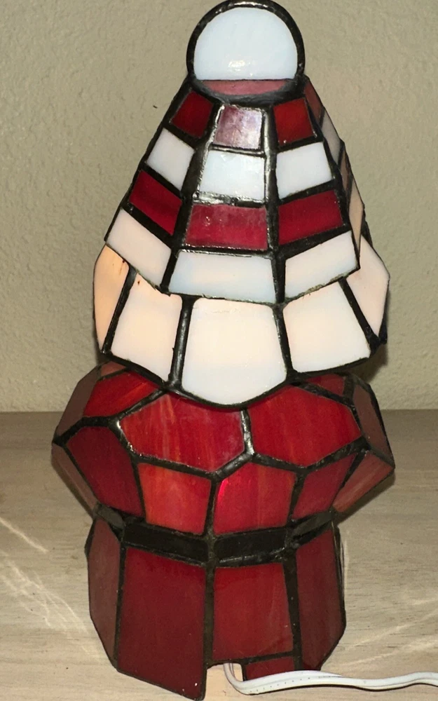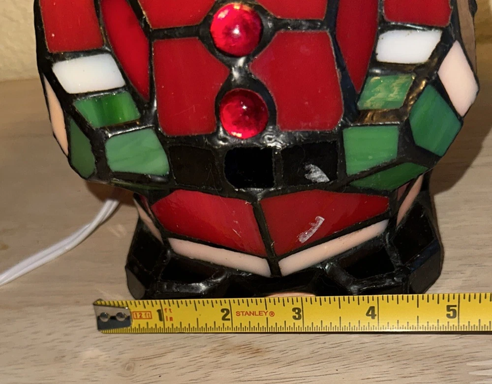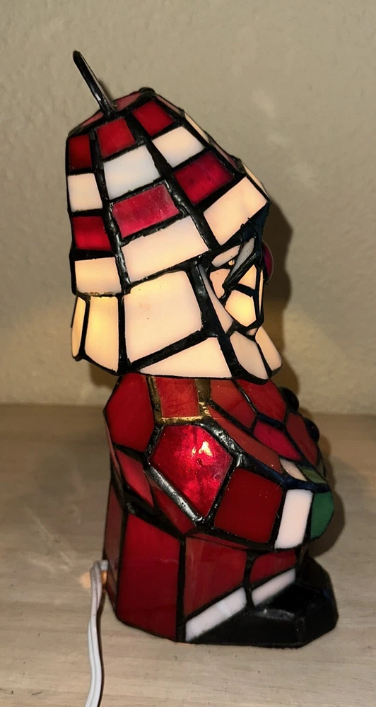 Tiffany Style Stained Glass Bobble Head Santa Table Lamp Working, Christmas Lamp It is in great preowned condition with no chips , cracks or breaks. Comes in original foam package with care instructions the only concern there is no top to foam package on bottom. Please review all of the photos for measurements and details. Kindly send me a message if you have any questions Thank you for looking 🎄 Bin 15