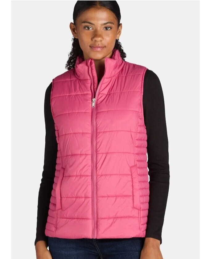 Product details Mix up your chilly weather layers with this stylish and versatile Puffer Vest from Time and Tru. A winter wardrobe essential, this puffer vest features a classic quilted design and ultra-lightweight, plush filling for added warmth without all the bulk. Layer this puffer vest over a long-sleeve, sweater, or hoodie. So many fun combos for so many occasions—on a hike, to run errands, or on your way to class. This puffer vest is sure to be your new go-to for fall and winter. Material: Shell: 100% Nylon; Filling: 100% Polyester; Lining:100% Polyester Care: Machine washable Country of Origin: Imported Size: Model is approx. 5’10” and is wearing a size S Fit Classic Weight: Lightweight Collar: Stand collar Closure: Front zip Sleeves: Sleeveless Pockets: 2 on-seam welt pockets Features: Zipper guard at neck; quilted pattern for elevated look; solid hues or pearlized hues Puffer Vest for Women and Plus Size Women from Time and Tru Fabric Care Instructions Machine Wash Cold; Only non-chlorine bleach when needed; Wash with like colors; Tumble dry low; Do not Iron; Close zipper before washing, remove promptly.