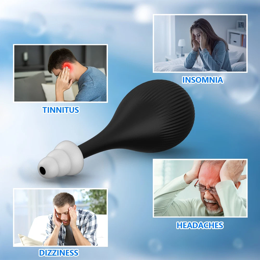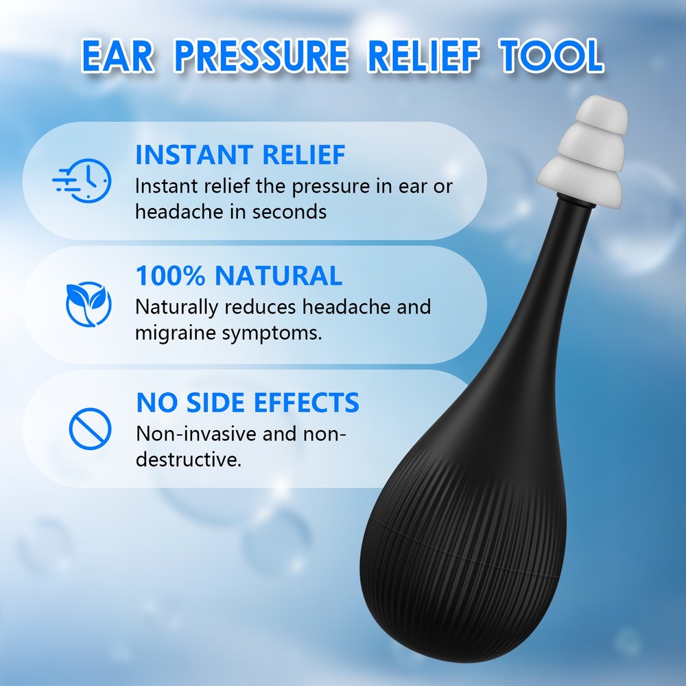 Relieve Ear Discomfort: Ear pressure regulator has a non-invasive design that gently stimulates the inner ear through air pressure, thus relieving ear discomfort caused by stress, high pressure, diving, motion sickness, and flying Widely Applicable: The migraine relief regulator has a wide range of uses, not only suitable for ear pressure discomfort during flights and boats, but also for various scenarios such as mountain climbing and deep-sea diving. It is an ideal companion for your travel, exercise, and daily health care. Silicone Material: Ear pressure relief device is made of soft and high quality silicone material, which fits perfectly with the ear canal and won't harm the eardrum, ensuring you a comfortable and safe experience during use Easy to carry: Tension relieving ear pressure tool is compact and easy to carry, perfect for traveling and daily life, when ear pain, just gently insert into the ear canal and press to solve your discomfort anytime, anywhere! Wide Range of uses: Ear pressure regulator is widely used, whether you are on a plane, car, train, elevator, swimming pool and at home, the ear pressure reliever can safely and easily solve your ear pressure problem.