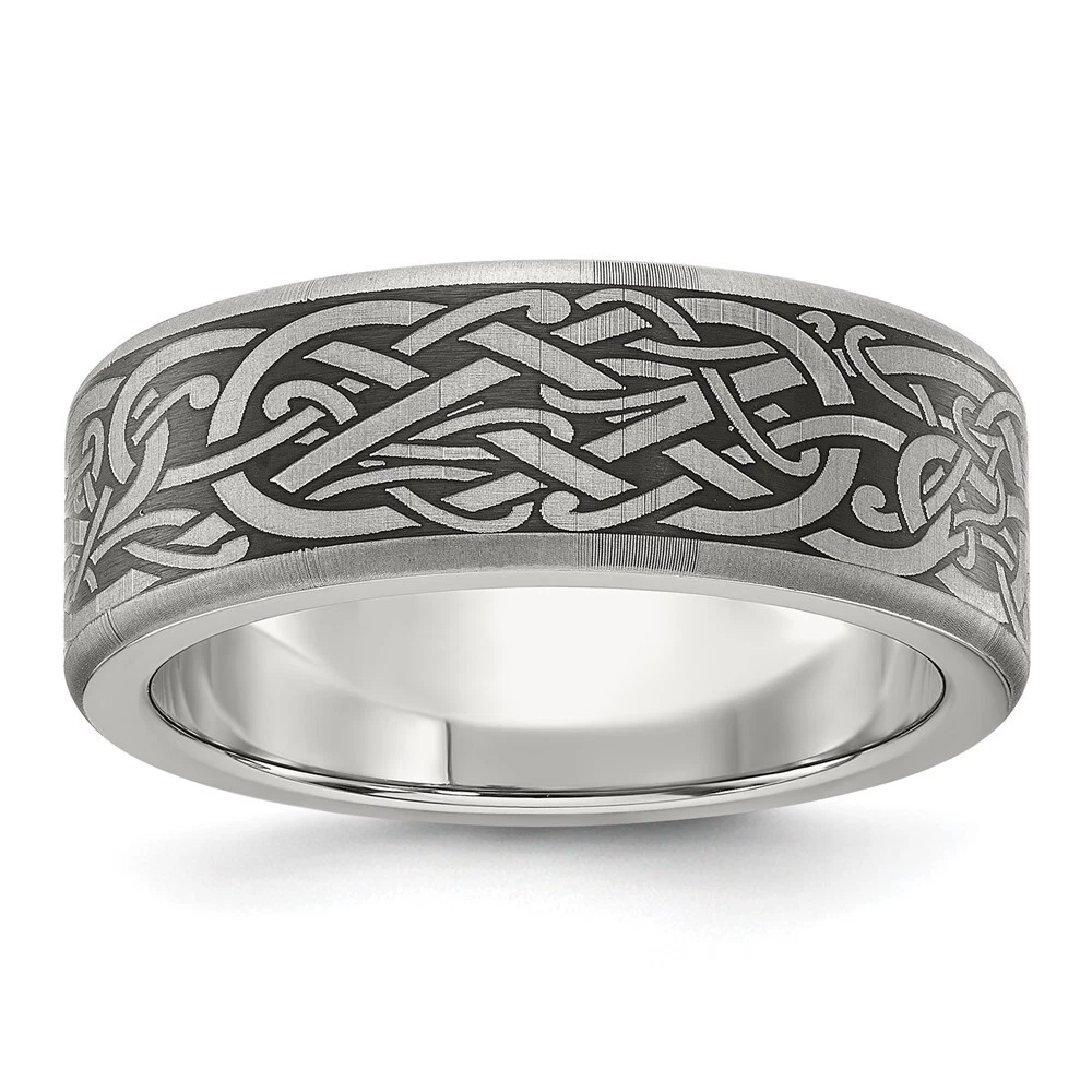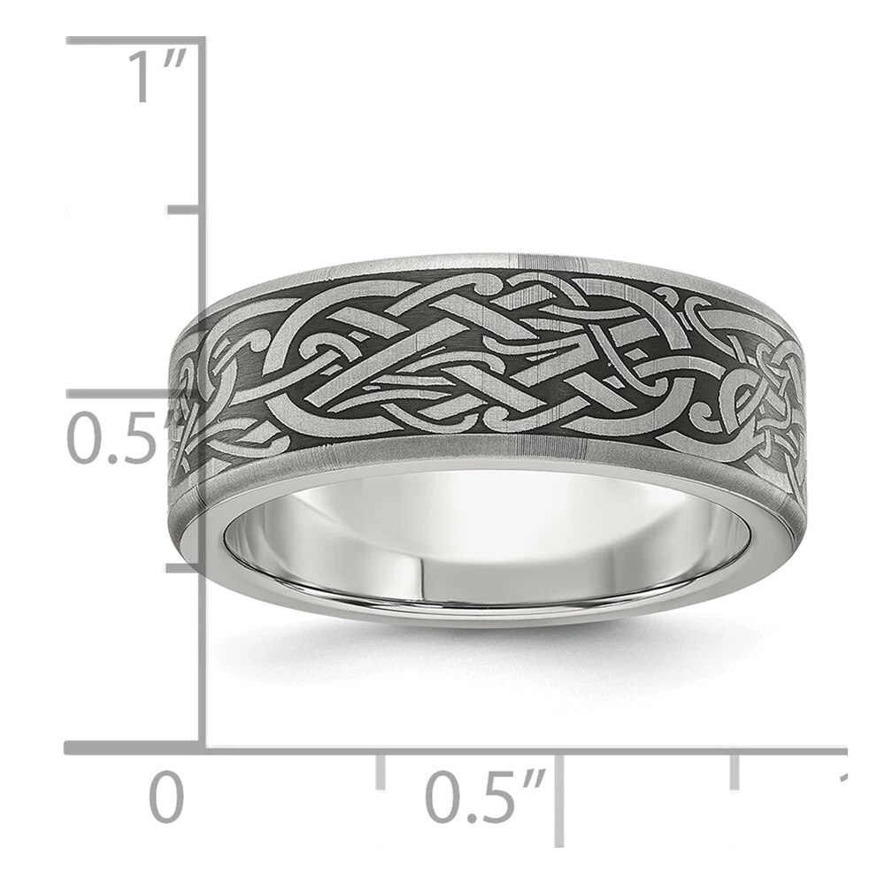 Titanium Brushed Laser Design 8mm Band Ring Size 8 for Men 5.28gm