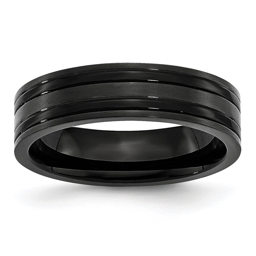 Finish:Polished & Brushed|Plating:IP-Plated|Band Width:6 mm|Material: Primary:Titanium|Ring Fit:Comfort|Sizeable:No|Thickness:< 2 mm|Item Weight U/M:gm|Width of Item:6 mm|Engravable:Yes|Packaging:Gift Pouch|Product Type:Jewelry|Jewelry Type:Rings|Sold By Unit:Each|Gender:Unisex|Texture:Grooved|Material: Primary - Color:Grey|Ring Type:Wedding Bands|Edge Type:Flat|Plating Color:Black|Ring Shape:Flat All weights and measurements are approximate and may vary slightly from the listed information. Welcome to diamond_6720 Payments We accept all Ebay approved payment. Please sent the payment to us within 8 days after the auction has ended, or you will have unpaid case auto open by eBay. Shipping Policy We will ship all items within 1 business days of purchase during the work week (M-F) excluding holidays. If you order on Friday, your order will be shipped the following business day. Tracking will be provided when it becomes available. We will only ship to a PayPal Verified Address. Please make sure your address is current and correct. If the information does not match, your order may be canceled. Buyers are responsible for all customs, duties and taxes for your respective countries. Delivery times for International Shipping will vary. California Buyers Pay 9.0% Tax on all orders. case auto open by eBay. Return Policy & Exchange Returns or Exchange are accepted. Buyer must contact us within 30 days after the item is received. Item must be returned in unworn and resalable condition. We will only issue a refund for the purchase price, excluding any shipping fees. If we are at fault, we will provide a full refund. Buyer is responsible for all return shipping costs. BUYERS FEEDBACK If you have any concerns regarding your purchase, please contact us via eBay Message, we assure you that a satisfactory resolution will be reached. Your feedback is very important to us Do remember to give us 5 star rating(*****) if you are satisfied with our product & service .