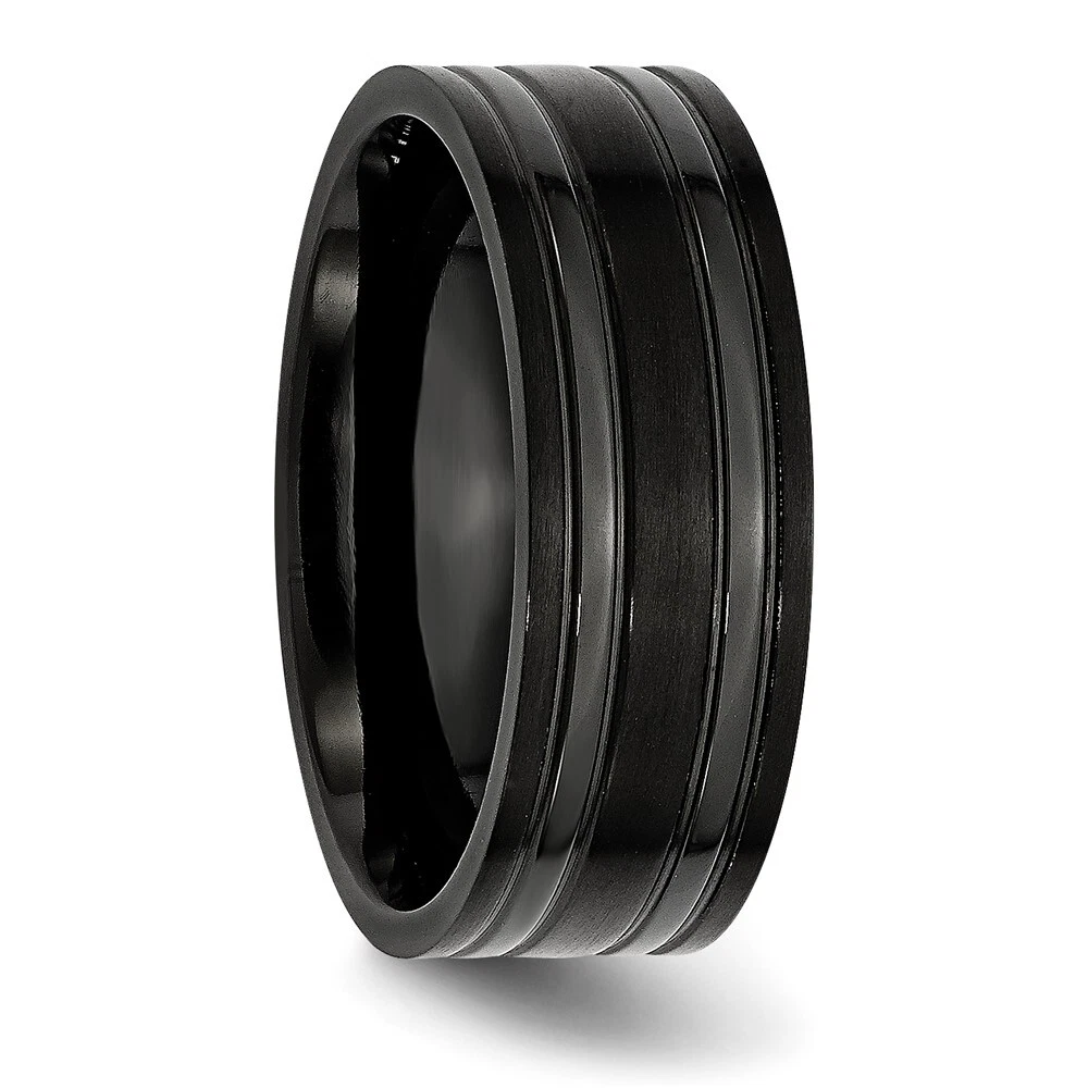 Finish:Polished & Brushed|Plating:IP-Plated|Band Width:8 mm|Material: Primary:Titanium|Ring Fit:Comfort|Sizeable:No|Thickness:< 2 mm|Item Weight U/M:gm|Width of Item:8 mm|Engravable:Yes|Packaging:Gift Pouch|Product Type:Jewelry|Jewelry Type:Rings|Sold By Unit:Each|Gender:Unisex|Texture:Grooved|Material: Primary - Color:Grey|Ring Type:Wedding Bands|Edge Type:Flat|Plating Color:Black|Ring Shape:Flat All weights and measurements are approximate and may vary slightly from the listed information. Welcome to diamond_6720 Payments We accept all Ebay approved payment. Please sent the payment to us within 8 days after the auction has ended, or you will have unpaid case auto open by eBay. Shipping Policy We will ship all items within 1 business days of purchase during the work week (M-F) excluding holidays. If you order on Friday, your order will be shipped the following business day. Tracking will be provided when it becomes available. We will only ship to a PayPal Verified Address. Please make sure your address is current and correct. If the information does not match, your order may be canceled. Buyers are responsible for all customs, duties and taxes for your respective countries. Delivery times for International Shipping will vary. California Buyers Pay 9.0% Tax on all orders. case auto open by eBay. Return Policy & Exchange Returns or Exchange are accepted. Buyer must contact us within 30 days after the item is received. Item must be returned in unworn and resalable condition. We will only issue a refund for the purchase price, excluding any shipping fees. If we are at fault, we will provide a full refund. Buyer is responsible for all return shipping costs. BUYERS FEEDBACK If you have any concerns regarding your purchase, please contact us via eBay Message, we assure you that a satisfactory resolution will be reached. Your feedback is very important to us Do remember to give us 5 star rating(*****) if you are satisfied with our product & service .