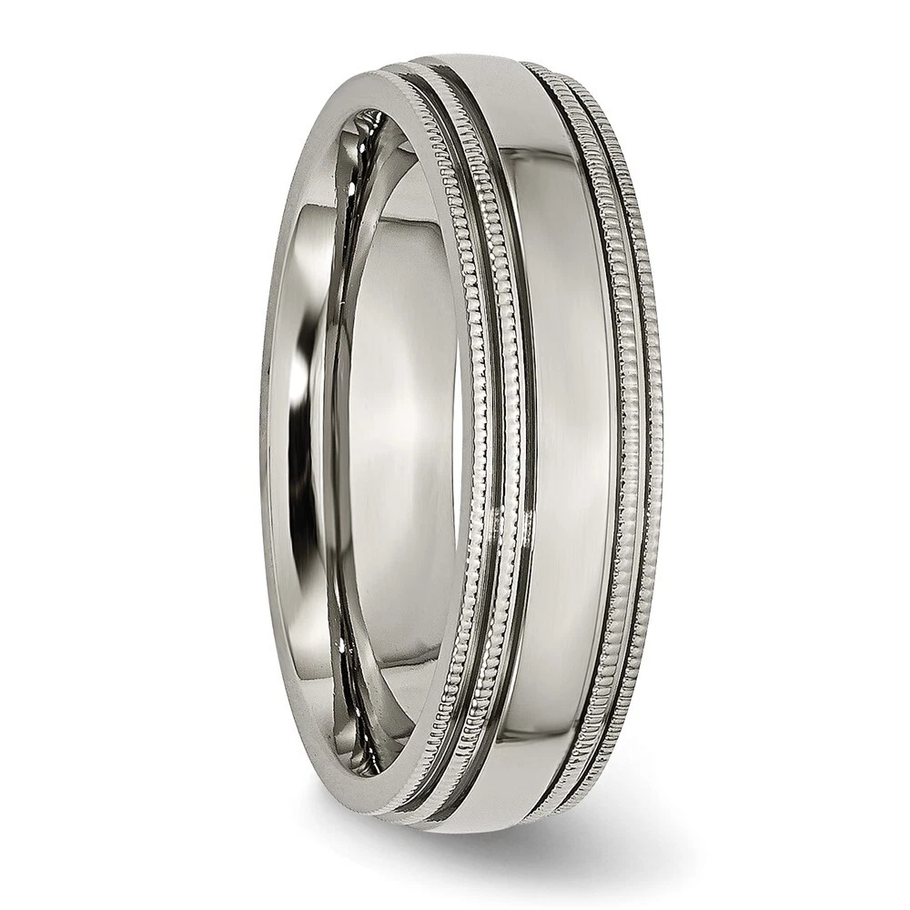 Finish:Polished|Band Width:6 mm|Material: Primary:Titanium|Ring Fit:Standard|Sizeable:No|Thickness:< 2 mm|Item Weight U/M:gm|Width of Item:6 mm|Engravable:Yes|Packaging:Gift Pouch|Product Type:Jewelry|Jewelry Type:Rings|Sold By Unit:Each|Gender:Unisex|Texture:Grooved|Material: Primary - Color:Grey|Ring Type:Wedding Bands|Edge Type:Beaded|Ring Shape:Half Round All weights and measurements are approximate and may vary slightly from the listed information. Welcome to diamond_6720 Payments We accept all Ebay approved payment. Please sent the payment to us within 8 days after the auction has ended, or you will have unpaid case auto open by eBay. Shipping Policy We will ship all items within 1 business days of purchase during the work week (M-F) excluding holidays. If you order on Friday, your order will be shipped the following business day. Tracking will be provided when it becomes available. We will only ship to a PayPal Verified Address. Please make sure your address is current and correct. If the information does not match, your order may be canceled. Buyers are responsible for all customs, duties and taxes for your respective countries. Delivery times for International Shipping will vary. California Buyers Pay 9.0% Tax on all orders. case auto open by eBay. Return Policy & Exchange Returns or Exchange are accepted. Buyer must contact us within 30 days after the item is received. Item must be returned in unworn and resalable condition. We will only issue a refund for the purchase price, excluding any shipping fees. If we are at fault, we will provide a full refund. Buyer is responsible for all return shipping costs. BUYERS FEEDBACK If you have any concerns regarding your purchase, please contact us via eBay Message, we assure you that a satisfactory resolution will be reached. Your feedback is very important to us Do remember to give us 5 star rating(*****) if you are satisfied with our product & service .