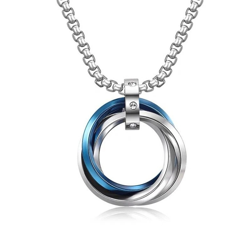 Titanium steel necklace, men's fashion clavicle chain, niche design Cuba pendant Material: titanium steel Treatment process: Polishing Shape: geometric type Chain style: bamboo chain Pendant material: titanium steel Length: 60cm Color: three-ring interlocking blue Style: Cool Style category: Personality