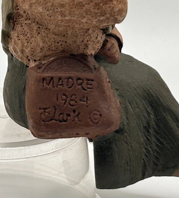 This Tom Clark figurine, titled "Madre," is a beautiful and unique addition to any collection. Hand-signed by the artist himself, this small sitting figurine stands at 4.25 inches tall and measures 2 inches in both length and width. Made of resin, it boasts a colorful and intricate design that is sure to catch the eye.Created in 1984, this edition #30 figurine is a rare find for any collector of decorative collectibles. The brand and artist, Tom Clark, is well-known for his stunning sculptures and this piece is no exception. Whether you're a fan of his work or simply looking for a one-of-a-kind piece to add to your collection, this figurine is a must-have.