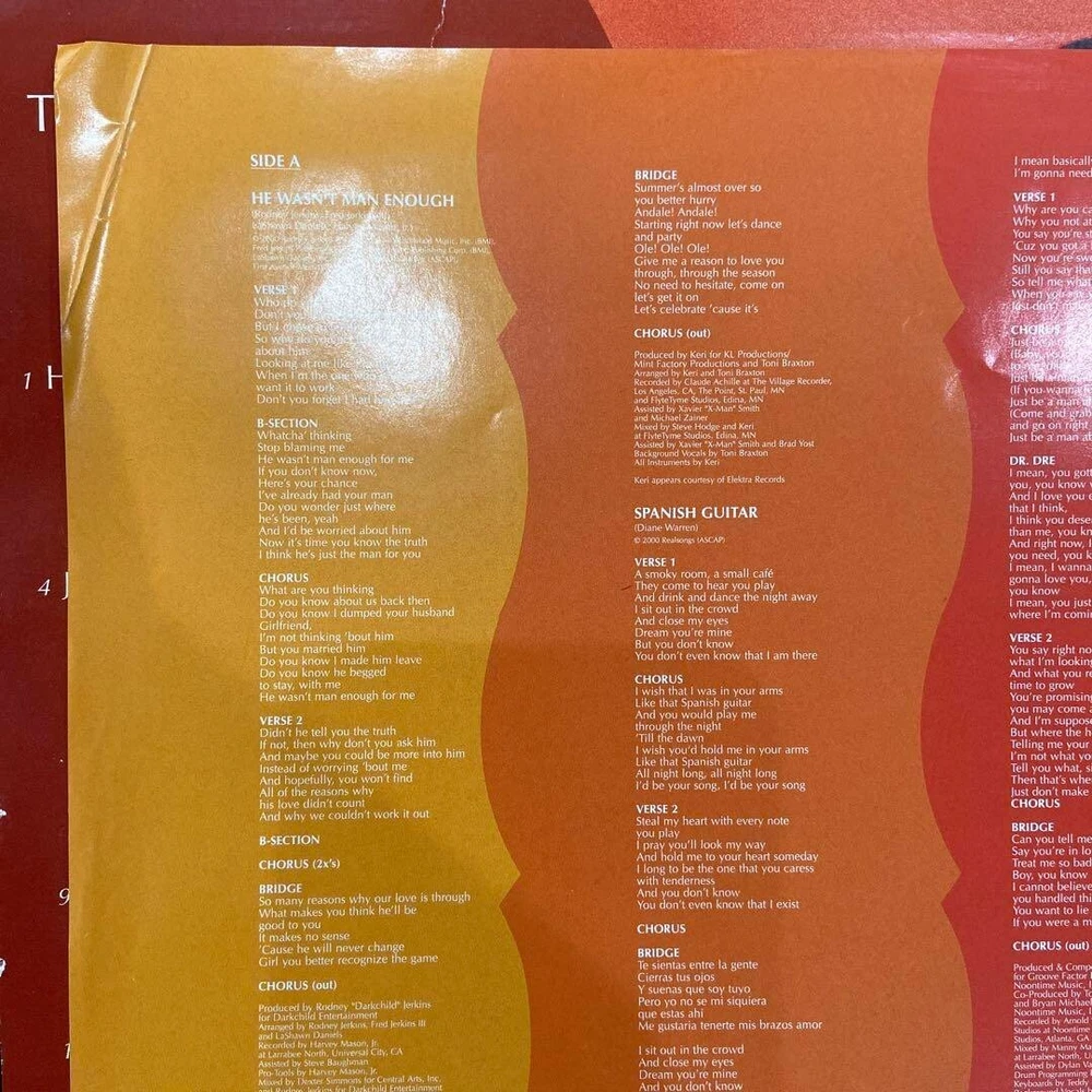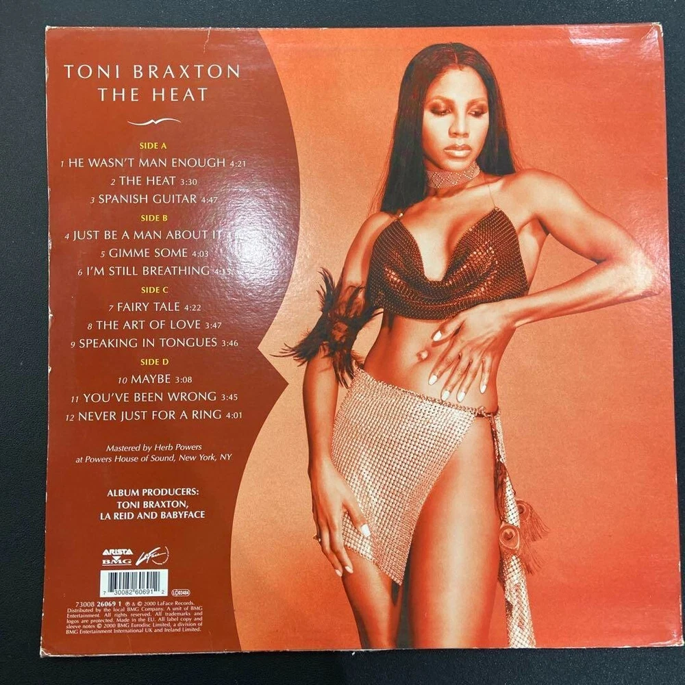 Artist: Toni Braxton Record Label: LaFace Records Release Year: 2000 Genre: R&B & Soul Material: Vinyl gtin13: Does not apply Record Grading: Near Mint (NM or M-) Speed: 33 RPM UPC: Does not apply Release Title: The Heat Seller Notes: “The jacket is damaged, but the disc is like new.” Format: Record Record Size: 12" Color: Black Type: LP