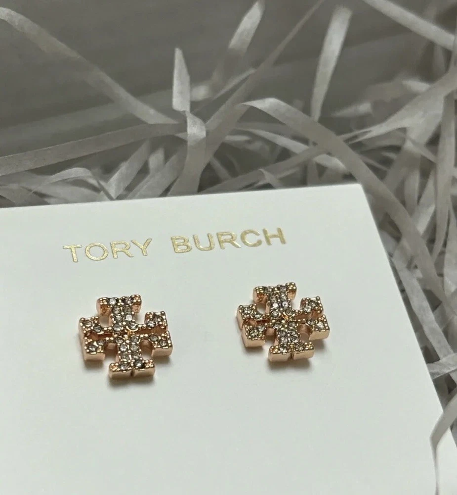 Tory Burch Double T Logo Shining Earrings Nice Lady Gift Holiday Rosegold