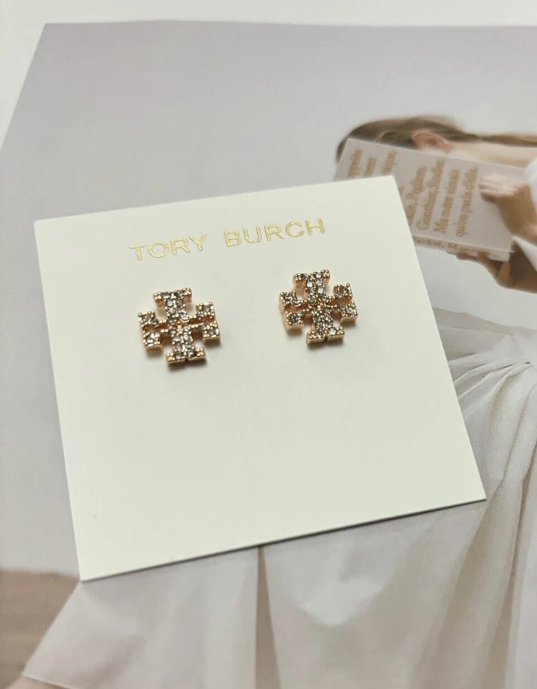 Tory Burch Double T Logo Shining Earrings Nice Lady Perfect Gift Holiday