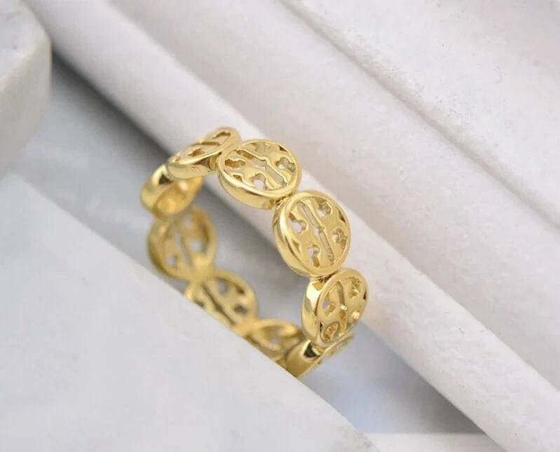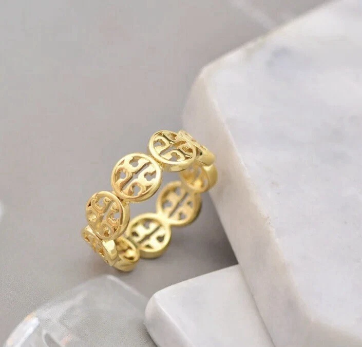 Tory Burch Lady Ring Gold Color Classic Logo Double T Size7 Elegant