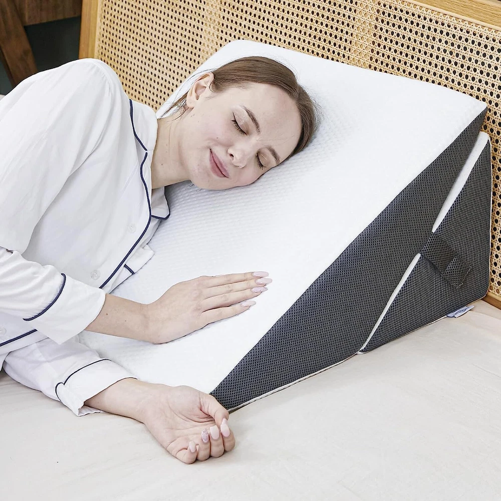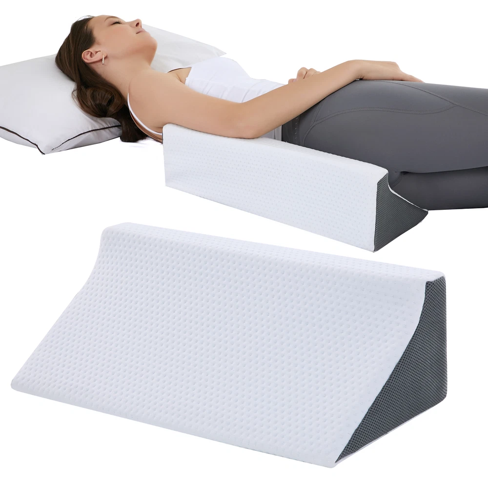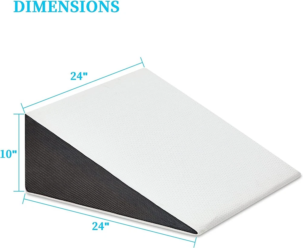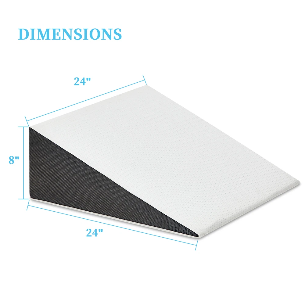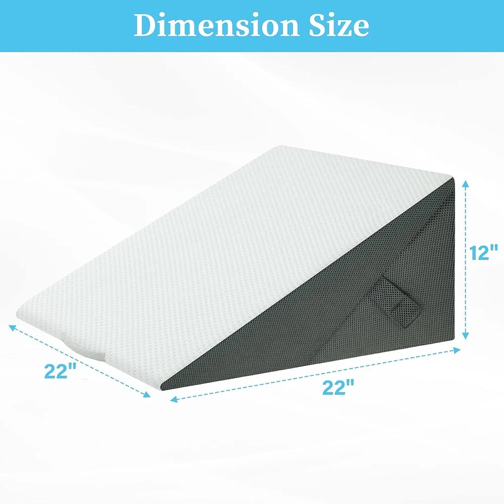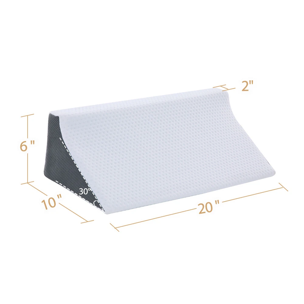 Touchutopia Cooling Triangle Bed Wedge Pillow Sleep Memory Foam Elevated Support About this item Ergonomic Design: Our triangle pillow wedge is designed to elevate the upper or lower body to help improve sleeping position and provides you with maximum comfort. 2 Layers of Comfort Foam: Touchutopia wedge pillow has a layer of gel-infused memory foam inside, which provides comfort for hot sleepers and makes it feel cooler. And high-density premium foam base increases the durability of the pillow while providing ample support. Bamboo & Removable Cover: The soft breathable bamboo cover is machine washable and prevents too much heat from becoming trapped close to the skin. The cover's zipper allows sleepers to add or remove the inserts easily. Muti-Purpose: The wedge pillow can be used to comfortably sit up and watch television or read a book in bed. It's also ideal for elevating the legs for increased circulation. Perfect Size: The elevated pillow measures 24 inches wide and 24 inches long, and is available with 10 or 12 inch incline. Certain images/photos incorporated into this template are the copyright property of scri8e.com and are used with permission. About this item Ergonomic Design: Our triangle pillow wedge is designed to elevate the upper or lower body to help improve sleeping position and provides you with maximum comfort. 2 Layers of Comfort Foam: Touchutopia wedge pillow has a layer of gel-infused memory foam inside, which provides comfort for hot sleepers and makes it feel cooler. And high-density premium foam base increases the durability of the pillow while providing ample support. Bamboo & Removable Cover: The soft breathable bamboo cover is machine washable and prevents too much heat from becoming trapped close to the skin. The cover's zipper allows sleepers to add or remove the inserts easily. Muti-Purpose: The wedge pillow can be used to comfortably sit up and watch television or read a book in bed. It's also ideal for elevating the legs for increased circulation. Perfect Size: The elevated pillow measures 24 inches wide and 24 inches long, and is available with 10 or 12 inch incline.