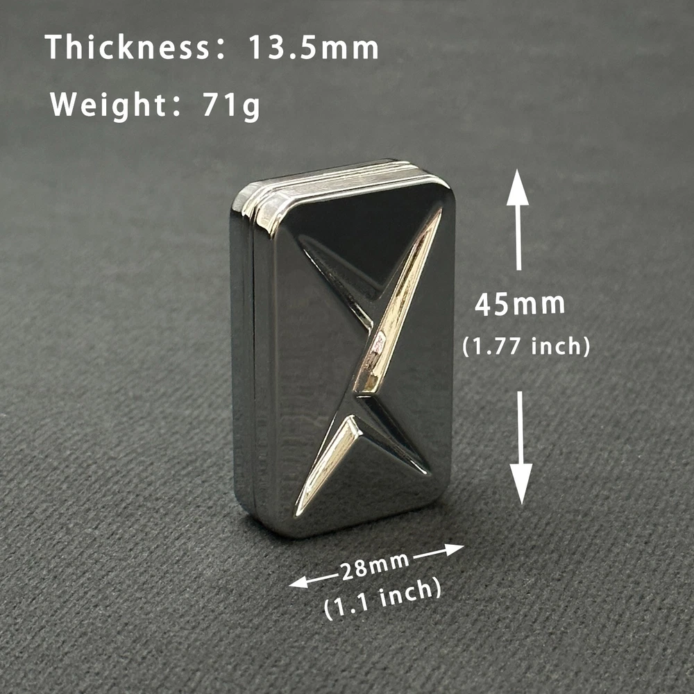 Welcome to buy this product. This is a metal infinite position lightning push card with built-in strong magnets. The magnetic force can be changed by the number of magnets to achieve different playing methods.It is made of metal and consists of two parts. Each part contains 8 magnets. Players can change the arrangement and quantity of magnets according to their preferences to achieve different gameplay. Dimensions: 45mm*28mm*13.5mm Weight: about 71g Material: Metal The products we send have 8 magnets per part by default. If you need to change the number of magnets, please place the toy on a metal plate with adsorption function when disassembling the toy. This can prevent the magnets from flying out when disassembling the toy. When you need to assemble, place the toy on the metal plate for assembly. If you want to perform gorgeous combos like in the video, you need to practice more. Relieve stress Suitable for restlessness, anxiety, inattention, autism, and avoiding bad habits. With Keen Toys, you can break bad habits such as biting and smoking. Your boring time will pass quickly, and you will feel happy when you are alone. Changed their bad habits with this fun and cool toy. Applicable Programs These relaxing mini decompression toys are pocket-sized, easy to carry and fit in small hands. In this way, you can easily put these delicate toys in a bag. These decompression toys are perfect for travel, work, home or pencil cases. Suitable for office, home, school, subway, station, outdoor, etc., play anytime, anywhere. This cool metal style, simple style and smooth feel brought by magnetic suction, can be easily used by adults and children. Just rotate the parts-it's a simple design, but it's so addictive that you can hardly get rid of it. You will love the tactile feedback and sound effects. Note: We support global shipping, but in order to ensure that you can receive the order, you are also welcome to confirm the address before placing an order so that we can help you find the logistics method suitable for your address so that you can receive it quickly. If you have any questions after receiving the product, please feel free to contact us.