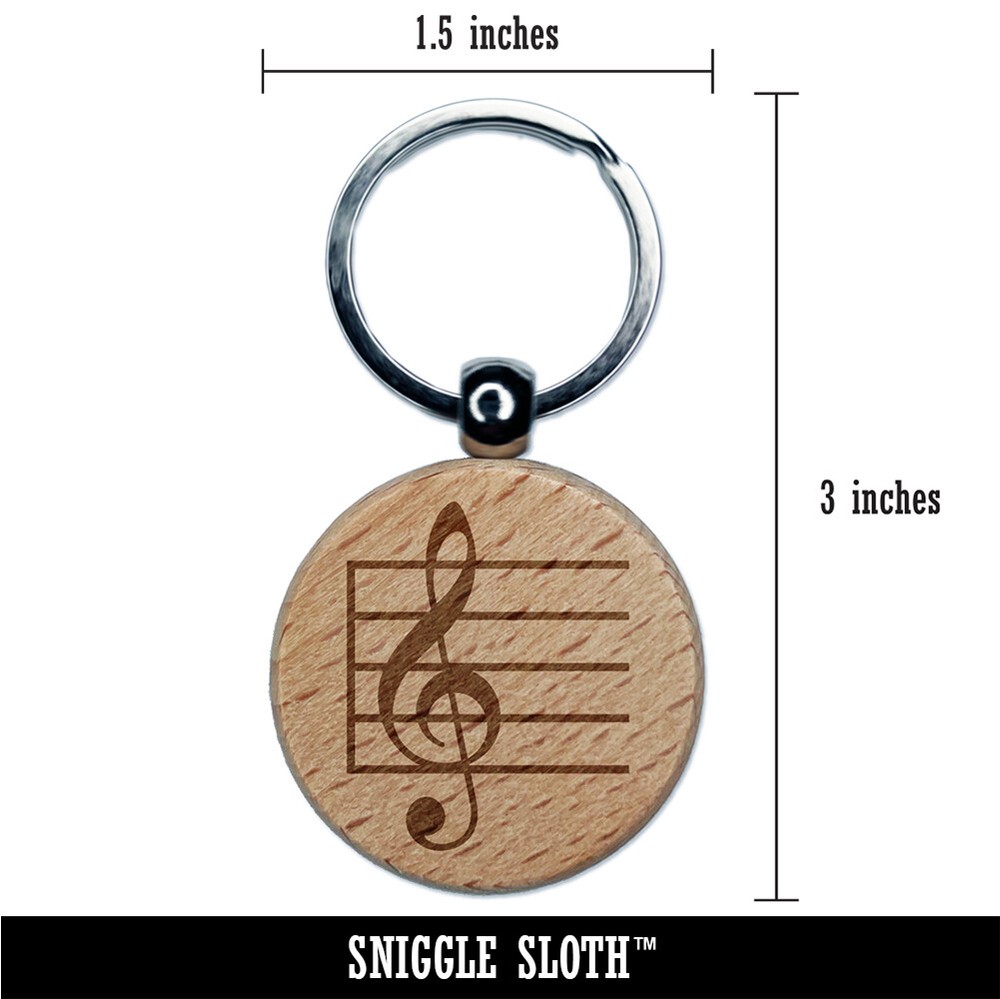 Treble Clef Wooden Music Note Engraved Round Keychain Charm