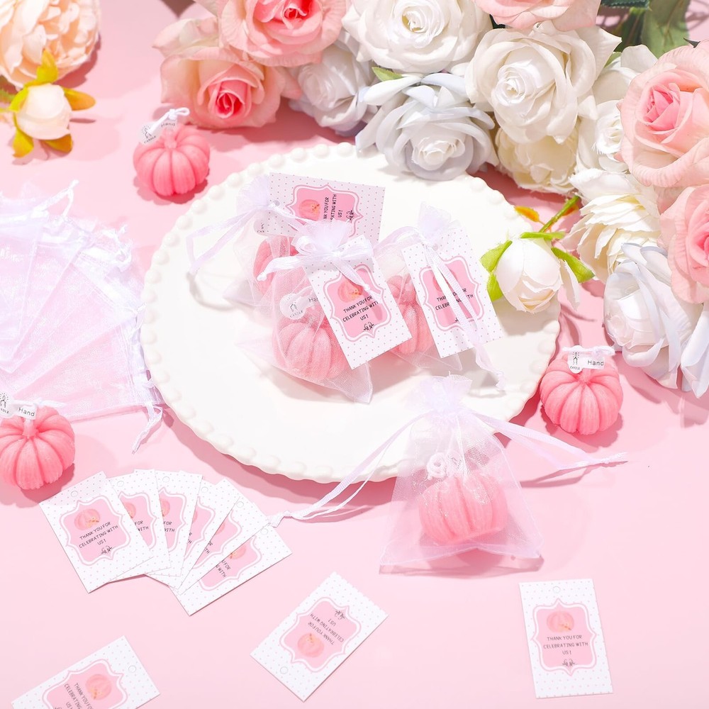 Treela 24 Sets Pumpkin Candles Fall Baby Shower Party Favors for Guests Little Pumpkin Shape Tealight Candle for Thanksgiving Autumn Baby Shower Wedding Birthday Thank You Return Gifts(Pink) Product Details Color: Pink Brand: Treela MPN: Treela-Baby Shower-56 UPC: Does not apply EAN: Does not apply Brand: Treela Color: Pink Product Dimensions: 1.57"W x 1.57"H Item Weight: 0.62 Kilograms Number of Items: 24 Are Batteries Included: No Indoor/Outdoor Usage: Indoor Specific Uses For Product: Decoration Shape: Pumpkin Material: wax, organza and paper Brand: Treela Color: Pink Product Dimensions: 1.57"W x 1.57"H Item Weight: 0.62 Kilograms Number of Items: 24 Are Batteries Included: No Indoor/Outdoor Usage: Indoor Specific Uses For Product: Decoration Shape: Pumpkin Material: wax, organza and paper Container Material: Organza Occasion: Baby Shower Seasons: All Season Special Feature: Clean Burn Style: Pink Pumpkin Wick Quantity: 1 Theme: Baby Shower, Pink Pumpkin Pattern: 3D Package Information: Bag Unit Count: 1.0 Count Embellishment: Bow Material Feature: lightweight, writable Candle Type: Tea Light Candle Size: Pumpkin Manufacturer: Treela Item Weight: 1.37 pounds Country of Origin: China Item model number: Treela-Baby Shower-56 Warranty Description: Na. Batteries required: No Practical and Full Package: the package contains 24 shower party favors kits for guests to use; Each set contains 1 pink pumpkin candle wrapped in 1 white organza bag and decorated with 1 thank you tag for practical application, also enough to share Cute Pink Pumpkin Design: the little pumpkin tea light candle features the 3D pink pumpkin pattern that looks cute and lovely, making it an ideal welcome gift for showers, also suitable for gender reveal parties Welcome to the World: the shower candle favors with thank tags and white mesh bags offer an unusual and fun opportunity to welcome a newborn into the world with the sincere wishes and deep love by lighting candles, which not only shows your appreciation for their presence, but also allows them to participate in warm and lovely celebrations, making the day meaningful and joyful Long Burning Time: the tealight candles are made of quality wax and can burn cleanly for about 2 to 5 hours without wind, creating a romantic and warm atmosphere for your party, light weight and easy to carry, ideal choices for your party Widely Applicable: using exquisite and lovely design, the shower tea lights candles for guests gifts are widely applicable to many kinds of themed showers, touching everyone's heart and winning their praises Features: Easy to match: Considering the simple and stylish designs, bright and vibrant colors, the shower thank you gifts for guests are easy for you to match well with various styles of occasions. Creative and intimate designs: The cute shaped tealight candles are classic and stylish. They are suitable for you to decorate, which can add beautiful embellishments for your home. Specifications: Material: wax, organza and paper Main color: as pictures shown Size: White organza bags: approx. 2.76 x 3.54 inches Thank you tags: approx. 1.18 x 1.97 inches Package includes: 24 x Cute shaped candles 24 x White organza bags 24 x Thank you tags Notes: Manual measurement, please allow slight errors on size. The color may exist a slight difference due to different screen displays.