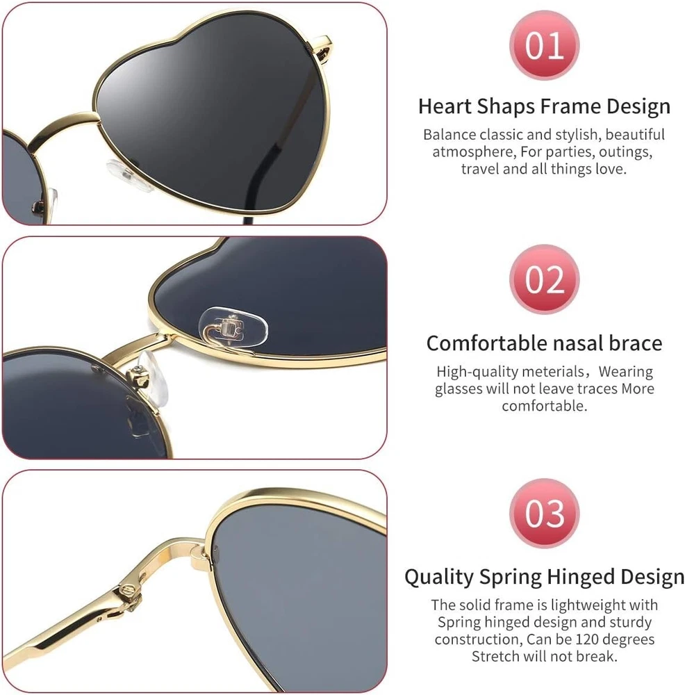 Chic Women's Heart Sunglasses with Polarized Mirror Lenses - Gold Frame ‹ › ‹ › ‹ › ‹ › ‹ › ‹ › ‹ › ‹ › ‹ › ‹ › Chic Women's Heart Sunglasses -Polarized Mirror Lenses -Gold Frame Features: Heart-shaped design for a trendy and stylish look Polarized mirror lenses for UV protection and reduced glare Gold frame for a luxurious and elegant touch Lightweight and comfortable to wear Perfect for everyday wear or special occasions Benefits: Protects your eyes from harmful UV rays Reduces glare for improved visibility Adds a fashionable statement to your outfit Comfortable for all-day wear Versatile for various occasions Why choose our Chic Women's Heart Sunglasses? Elevate your style with our Chic Women's Heart Sunglasses featuring polarized mirror lenses and a gold frame. Not only do they provide UV protection and reduce glare, but they also add a touch of luxury to your look. Lightweight and comfortable, these sunglasses are perfect for everyday wear or special occasions. Stand out from the crowd and protect your eyes in style with our trendy heart-shaped sunglasses. Don't settle for ordinary sunglasses - choose our Chic Women's Heart Sunglasses for a fashionable and functional accessory! Shipping Free & Fast Shipping - We offer free shipping to most of the USA with a normal delivery time of 3-7 days. However, due to the current situation, additional delivery time (up to 3 weeks) may be required for some items. Alternative Carriers - We may use alternative carriers (e.g. USPS, FedEx, UPS, etc.) to ensure your package arrives safely and on time. Due to the use of multiple carriers, we are unable to provide a tracking number automatically. Handling Time - Orders are processed and shipped within 1-2 business days of receiving cleared payment. Shipping Restrictions - Shipping to Alaska, Hawaii, Puerto Rico, Guam, and other US territories may incur shipping charges or delivery restrictions. Please contact us before ordering, or your order can be refunded/cancelled. State Restrictions - There may be restrictions based on your state of purchase. For example, certain items may not be shipped to California due to state regulations. Contact for Tracking Updates - If you require tracking updates or have any concerns about the delivery of your order, please feel free to contact us, and we will be happy to assist you. Return 30-Day Hassle-Free Returns - We want you to be completely satisfied with your purchase. If you are not, you can return the item within 30 days of receiving it for a full refund or exchange. Easy Return Process - To start a return, simply contact us and we will provide you with a prepaid return shipping label and detailed instructions. Restocking Fee - There are no restocking fees for returns. However, the buyer is responsible for return shipping costs if the return is not due to a seller's error. Refund Processing Time - Refunds will be processed within 5 business days of receiving the returned item in its original condition. Payment We accept all major credit cards, PayPal, and Apple Pay for your convenience. Your payment information is secure and encrypted to ensure a safe and seamless transaction. Please complete your payment within 3 days of purchase to avoid any delays in shipping. Feedback Your feedback is extremely important to us. We strive to provide the best products and customer service possible. If you are satisfied with your purchase, please take a moment to leave us a positive review. If you have any concerns or issues with your order, please contact us before leaving negative feedback. We are committed to resolving any problems and ensuring your satisfaction. Contact Us If you have any questions or concerns, please feel free to reach out to our customer support team. You can contact us through the eBay messaging system. We are available Monday to Friday, 9:00 am to 5:00 pm EST, and we will do our best to respond to your inquiry within 24 hours. Thank you for supporting our small family business!