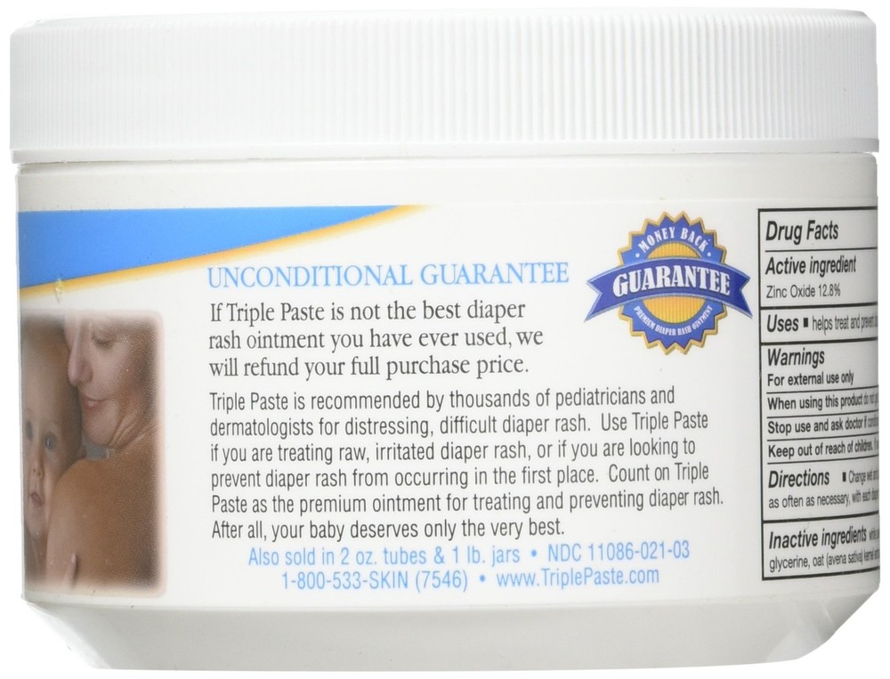 Triple Paste medicated ointment for diaper rash works quickly to relieve raw irritated skin. Works quickly to relieve raw irritated skin Recommended by pediatricians and dermatologists when other treatments fail Fragrance free and hypoallergenic Unconditionally guaranteed