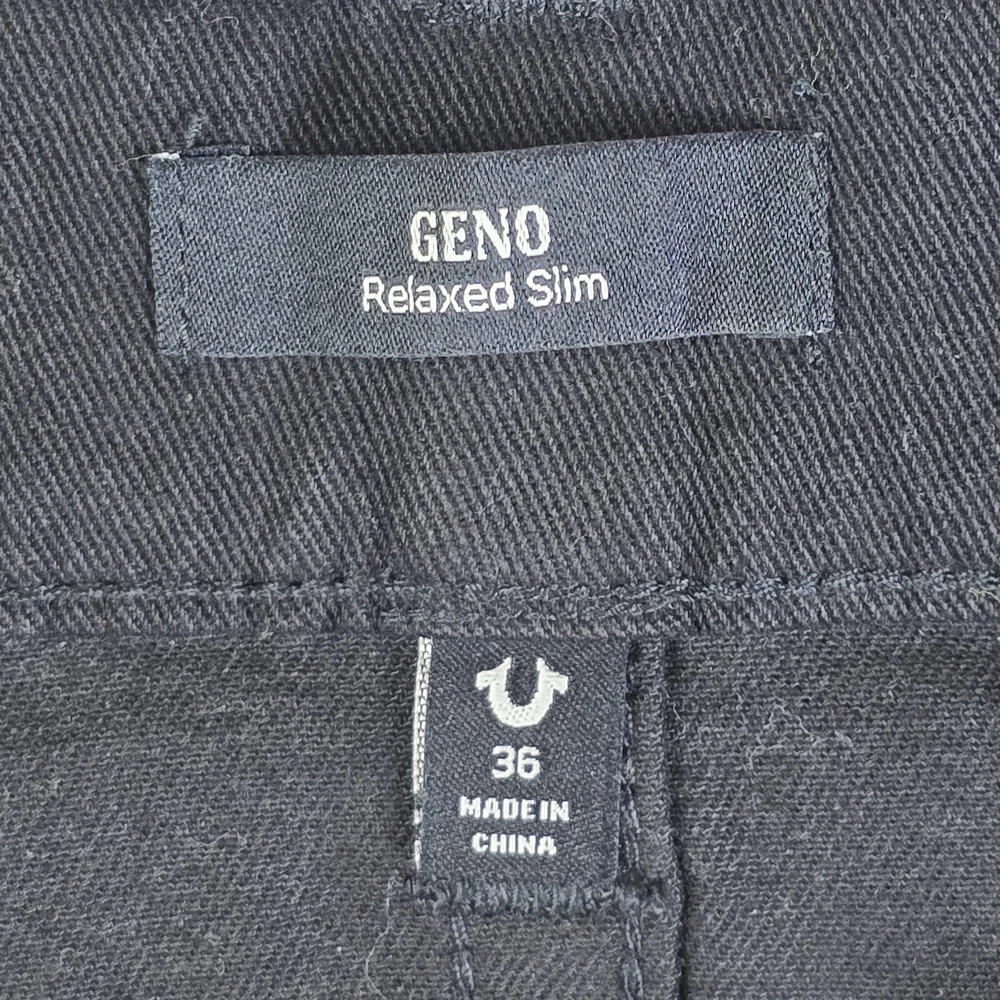 True Religion Geno No Flap SN Relaxed Slim Fit Jeans Men 36x32 Body Rinse Black ACTUAL FIT: 36X31.25" MSRP: $149 PLEASE SEE PHOTOS FOR EXACT DETAILS AND CONDITION OF THE ITEM. ALL MEASUREMENTS ARE TAKEN FLAT. PLEASE COMPARE MEASUREMENTS OF SIMILAR ITEM THAT YOU OWN TO ENSURE CORRECT FIT. WAIST: 18" HIPS: 22" INSEAM: 31.25" RISE: 12" CUFF WIDTH: 8" CONDITION: NEW WITH TAGS SHIPPING: U.S. SHIPPING IS USPS GROUND ADVANTAGE. INTERNATIONAL SHIPPING IS Ebay GLOBAL SHIPPING PROGRAM HANDLING TIME: 2 Full business days. Usually ships next day after purchase excluding weekends or holidays. FEEDBACK: Please leave feedback once you receive the item. If there is an issue with the item, please contact me and let me correct the issue before leaving feedback
