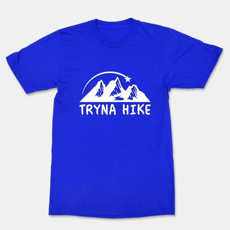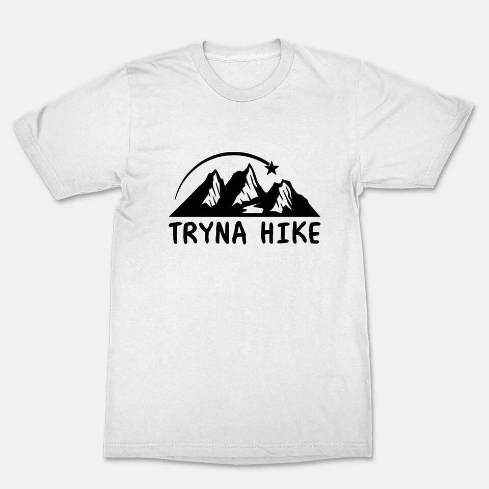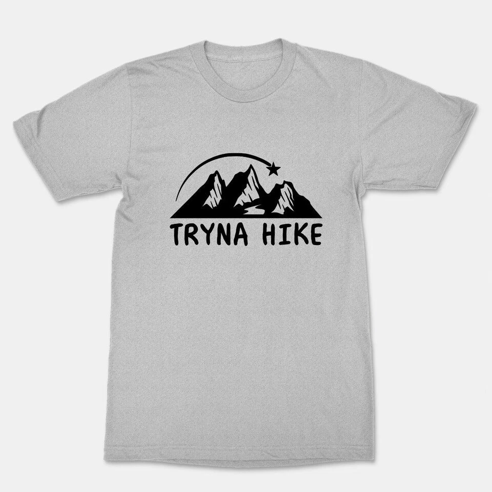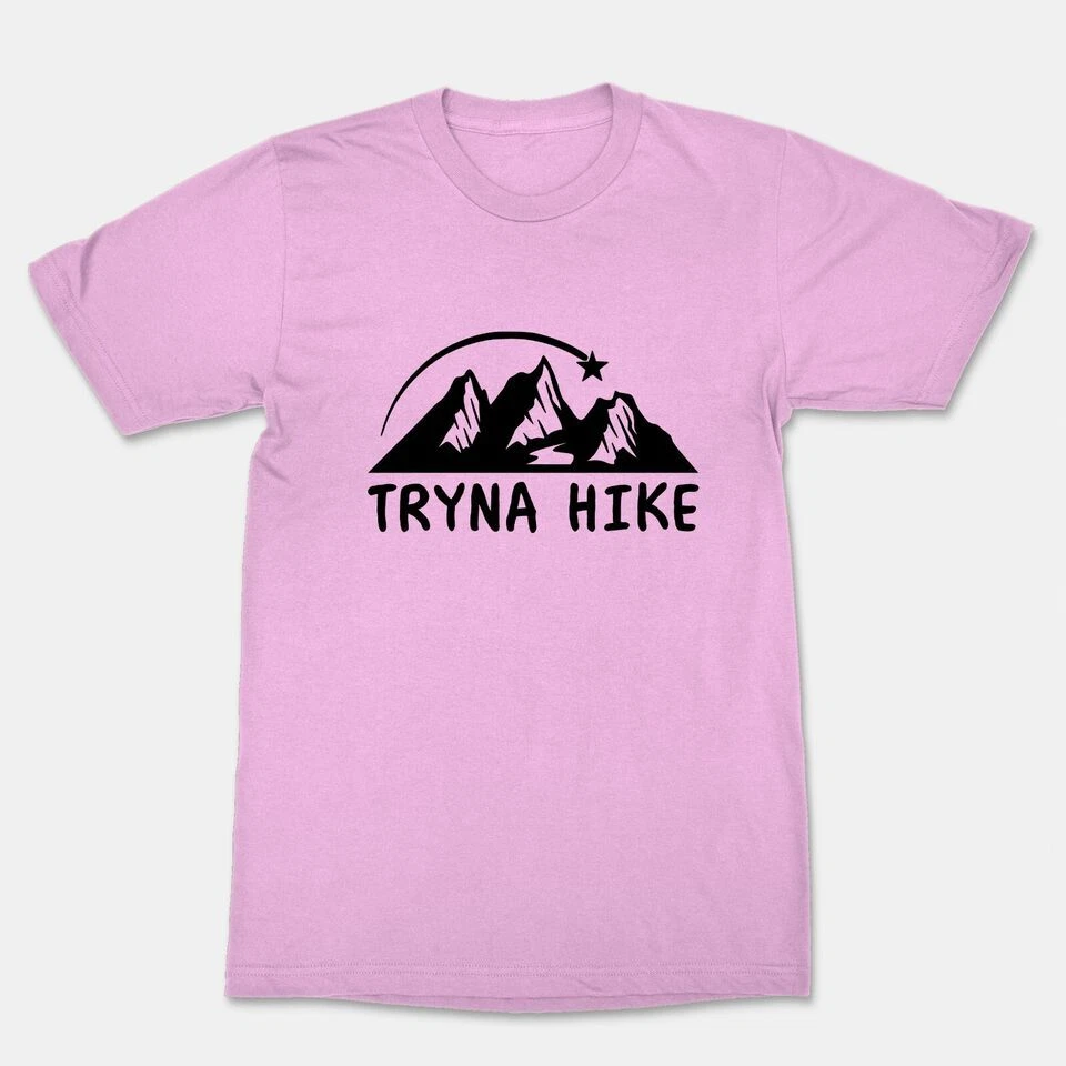 Get ready for your next outdoor adventure with this unique graphic tee. Featuring a round neckline and short sleeves, this unisex t-shirt is made with 100% cotton jersey fabric for all-season comfort. The solid pattern and easy care instructions make it a versatile addition to your wardrobe. Perfect for casual outings, birthdays, or even Christmas, this tryna hike hiking shirt is a great gift for nature lovers and sarcastic hikers alike. Available in sizes S-3XL, this regular fit t-shirt is machine washable for your convenience. Handmade in the United States, this graphic tee showcases a nature theme and is sure to make a statement.