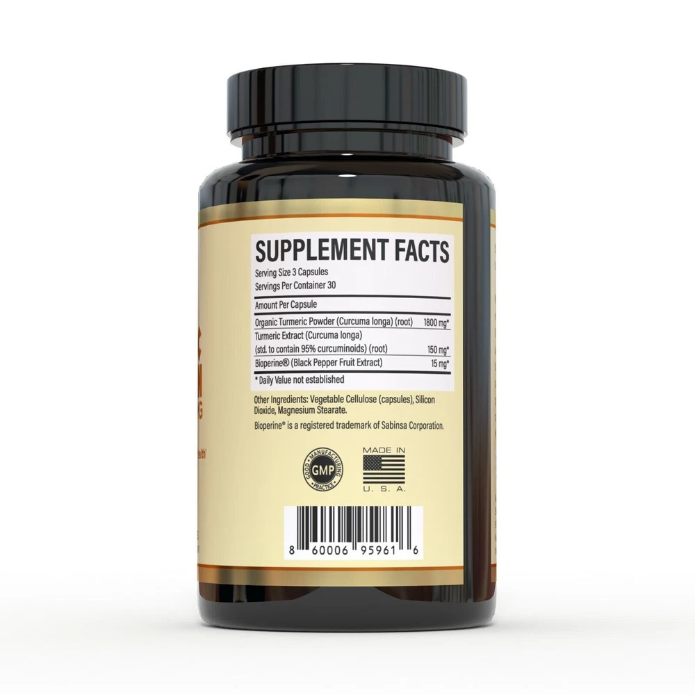 Condition:New: A brand-new, unused, unopened, undamaged item (including handmade items). See the seller's ... Main Purpose:Anti-Inflammatory, Antioxidants, Arthritis, Immune Support Administration:Oral Ingredients:Curcumin Dosage:1950mg Brand:Bioperine Active Ingredients:Turmeric Type:Extract Formulation:Capsule Type of Diet:Herbal, Natural, Vegetarian Body Area:Body Features:Food Grade, Natural, Organic Scent:black pepper, Curcumin, turmeric, curcuminoids, Herbal Country/Region of Manufacture:United States Item Weight:3.5 oz eBay The Pure Pill focuses on providing innovative and affordable dietary supplements which are meant to promote a healthy, active lifestyle without compromising on your comfort or wellbeing. We make it a rule from working only with premium grade ingredients and state of the art facilities which obey all international standards of quality and safety. Should you not be entirely pleased with your purchase, our customer care department is entirely at your disposal! Turmeric Curcumin with Bioperine – Excellent Joint and Immune Support On A Daily Basis The Pure Pill turmeric supplement is definitely a must in your diet, supporting joint health and having excellent anti-inflammatory and antioxidant properties which give your immune system a proper boost. Made with organic ingredients, with a pure and high concentration of active ingredients, superior bioavailability and absorption, this turmeric curcumin with black pepper is easy to digest and comes in a convenient 90-capsule bottle, for 30 servings. Still not convinced? Here are some of the amazing features of this product: · Made in USA; · GMP sealed facility; · Third party tested; · Joint support, immune support; · Promotes healthy heart and brain; · 1950mg highly potent formula; · No dangerous fillers and preservatives; · 95% curcuminoids; · For men and women of all ages. Reap all the benefits this premium anti-inflammatory supplement has to offer!