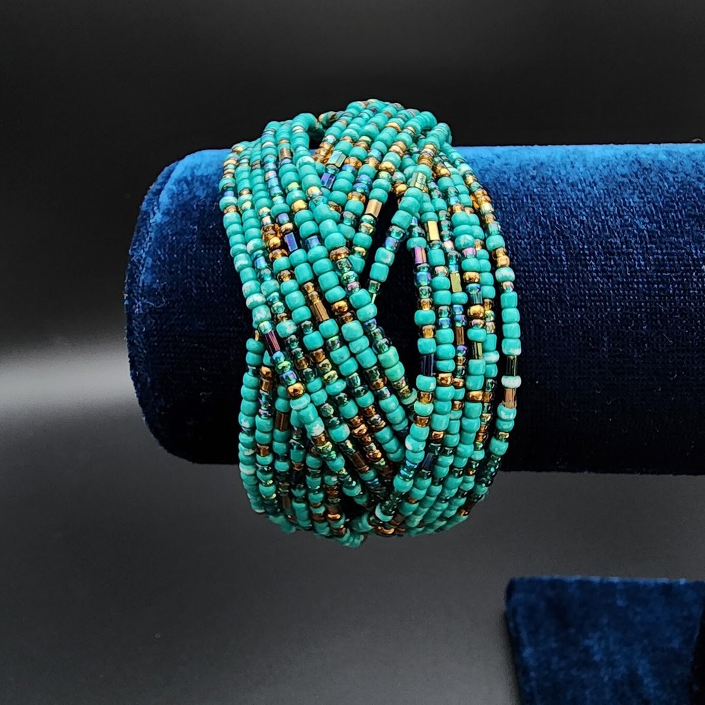 This bracelet is absolutely stunning! The turquoise and bronze beads add a gorgeous boho touch, and the memory wire makes it super comfortable to wear. It’s adjustable, so it fits perfectly every time. The craftsmanship is excellent—durable yet lightweight. Perfect for adding a bohemian flair to any outfit!