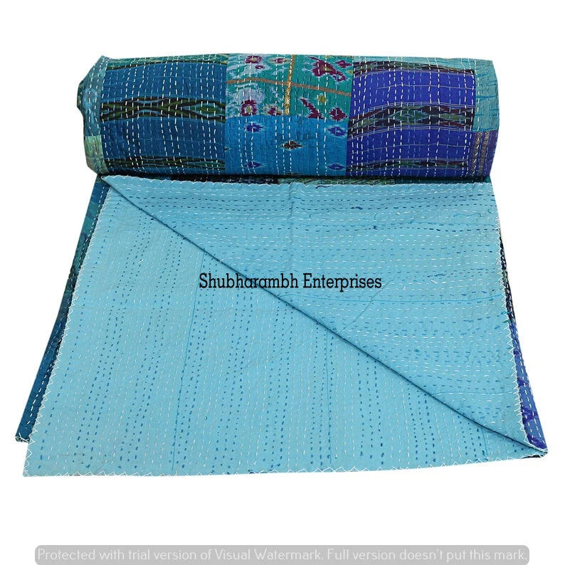 Product Details: Item - 1 PC Indian Patchwork Silk Kantha Quilt. Fabric - 100% Silk Fabric. Dimension - 90" X 108" Inches ( 225 X 274 CM) Colour - As Show in image Wash Care - Normal Hand Wash In Cold Water. Product Description: Indian Patchwork Silk fabric Hand Kantha Quilted Queen Size Quilt, Blanket / Bedspread These Queen Kantha quilt is made by two layer Silk fabric. These Kantha quilt is made by most of valuable hand art to give a unique Kantha pattern. Payment policy: We accept the payment by pay pal. International buyers are responsible for their countries duties and taxes.