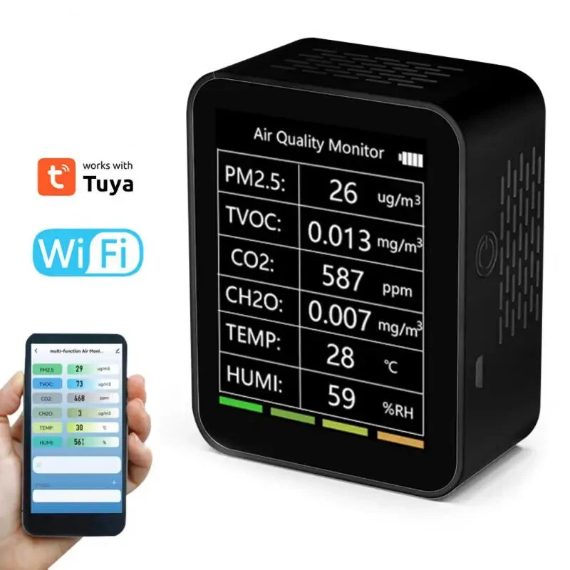Tuya CO2 Carbon Dioxide Sensor VOC Detector NDIR High-precision Measurement Exceeds Standard Alarm Smart Home Linkage Tuya Senso Description: Working temperature: -20--85℃ Working voltage (rated): 4.8-12V Working current: 10-496ma Size: 90*90*35mm Power supply mode: USB 5V/1A Communication protocol: WIFI 2.4GHZ color: White Shell material: PVC Examination range: Formaldehyde: 0-10.0 (mg/m3) VOC: 0-99.9 (ppm) Carbon dioxide: 0-1000 (ppm) Temperature: 0-60 (℃) Humidity: 0-95 (%) After being paired to the APP, it can be linked with various smart home products. For example, when detecting excessive formaldehyde/VOC, the smart air purifier is automatically turned on; when the carbon dioxide is exceeded, the smart fresh air fan is automatically turned on; when the temperature is abnormal, the air conditioner temperature is automatically adjusted ; When the humidity is too low or too high, the smart humidifier will be turned on/off automatically; when a certain parameter is detected to exceed the standard, a message will be sent to the alarm (the above smart linkage function needs to be matched with the smart home product) 100% Brand New and High Quality! Smart air box is the home of intelligent device for remote monitoring of air environment,It can also detect formaldehyde, VOC of poisonous gas, CO2, temperature, humidity and so on 5 kinds of environmental parameters,In environmental parameters exceed bid automatically when the graffiti smart home air conditioning, new fan, humidifier, air purifier on household environment optimization. The detection range of the smart air box: formaldehyde, VOC gas, CO2, temperature, humidity Specifications: 1. 100% Brand New and High Quality:The product is 100% brand new and of high quality. 2. Smart air box:It is a smart air box that serves as the home for an intelligent device for remote monitoring of the air environment. 3. The detection range of the smart air box::The detection range of the smart air box covers formaldehyde, VOC gases, CO2, temperature, and humidity. 4. Optimizing the home environment:When the environmental parameters exceed certain levels, the graffiti smart home air conditioning, new fan, humidifier, and air purifier automatically adjust to optimize the household environment. 5. Improving the quality of living environment:The smart air box is a reliable and convenient solution for improving indoor air quality and creating a healthier living environment. Package Included: smart air box X1 Instruction for use X1 Card pin X1 USB power supply cord X1 Notes: please do not put air box at lampblack is too big, strong convection air or in high concentration organic gas for a long time, otherwise it will damage the sensor.