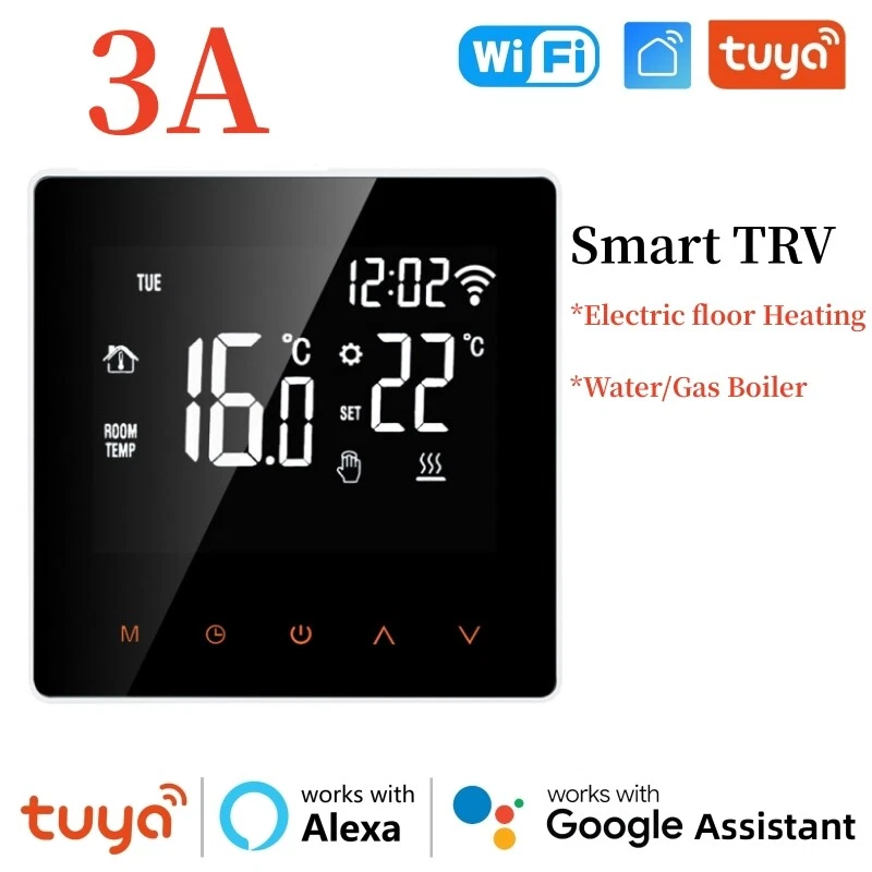 Description: [ LCD Touch Display ] - Elegant appearance, one face design, anti-scratch. Large LCD touch screen display with back light, easy to read. [ APP /Voice Control ] - Smart thermostat that can be controlled by your phone before you come back home. (APP: Tuya / Smart life. voice control by Goolge home alexa) [ Manual/ Auto Mode] - Free to choose manual mode or auto mode for different purposes. [ Accurate Temperature ] - Internal sensor floor sensor, perceptive ambient temperature and the floor's temperature. Automatically obtain the temperature, 1°C accuracy. [ Weekly Programmable ] - The thermostat supports different temperature setting accordingly with 6 time-modes daily. [ Memory Function ] - No need to worry about power failure, data memory when power is off. [ Children Lock ] - Keypad locking function is designed to prevent children from operating by mistake. [ Application ] - Suitable for electric heating/water gas boiler/water heating.Perfect for home, office, shopping mall, hotel, etc. Specifications: -- Type: Wi-Fi smart thermostat -- Material:anti-flammable PC -- Voltage:110-230V AC,50/60HZ -- Max. Current Load: 16A/3A -- Temperature Accuracy: 1℃ -- Temperature Setting: 5-95℃ -- Key: Touch Key -- Item Size: 86 * 86 * 40mm / 3.4 * 3.4 * 1.6in Package Included: 1*EU Toucn Switch 1*User Manual