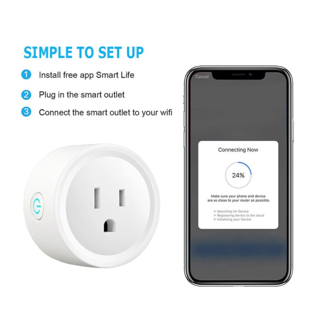 Product Description Dear Customer: If you didn't receive your package, pls contact us first instead of open"INR" , We will do our best to help you^-^ Please do not leave us a Neutral evaluation/negative Feedback . If you encounter any problems, please contact us first. Thank you very much for your help!❤ Description: 100% Brand new and high quality Remote ON/OFF–Turn electrical devices on/off from anywhere App Support –Free iOS and Android mobile App smart life Sync Status–Real-time device status provided to App Timing–Set scheduled/countdown/loop timers to turn on/off at specified time Share Control– Control your smart home together with your family Scene–Turn on/off a gang of devices with one tap Smart Scene–Triggered on/off by temperature, humidity or other environmental conditions Voice Control –Works perfectly with for Amazon Alexa/for Google Assistant Portable and durable, easy to carry, lightweight Support WiFi+Bluetooth two ways to connect Specifications: Input voltage: 100-240V Output current: 20A Standby power: 2300W Ordinary load: 600W Housing: ABS+PC fireproof material Specifications: US Plug Certification: FCC/ROSH Working humidity: <80% Working temperature: -20 ° C - 50 ° C Wifi distance: 50 meters outdoors, indoors up to 30 meters (depending on building materials and structure) Wifi type: 2.4GHZ 802.11b/g/n Network security level: WPA/WPA Color: White APP:smart life /Tuya Package Included: 1*Smart Socket 1*manual Payment Policy Shipping Policy Returns Policy About Feedback 1. Paypal ONLY. 2. We ONLY ship to your PAYPAL verified address for more safely, so please make sure your shipping address is correct before you buy item. 3. Buyer need ship to other address (not Paypal confirmed address) should contact us before buy item. 1. Your order will be shipped within 1-2 business days once we receive your payment. 2. If you pay by e-check, we will ship your order once your payment is cleared. 3.We are not responsible for any customs duty incurred at foreign customs. 4.The shipping time is around 25-35 Business Days depending on your location. Attention: Please contact us via ebay message like the way shown above before starting a return request, so we can deal with your issue quickly and efficiently. 1.Return this item. 2. Select a reason: please choose"It's the wrong size or doesn't fit" 3. 30 days Warranty from the date of purchase covering manufacturing defects, but doesn't cover items that have seen abused, burned and damaged in any form.Please contact us if you have NOT received item beyond 5 working days, we will check it with post office and resend any missing item. 1. we commitment to 100% customer satisfaction. 2. Please feel free to contact us if you have any problem or before you leaving negative feedback,we will go back within 24 hours. ( there may be delayed during holidays and weekends ).