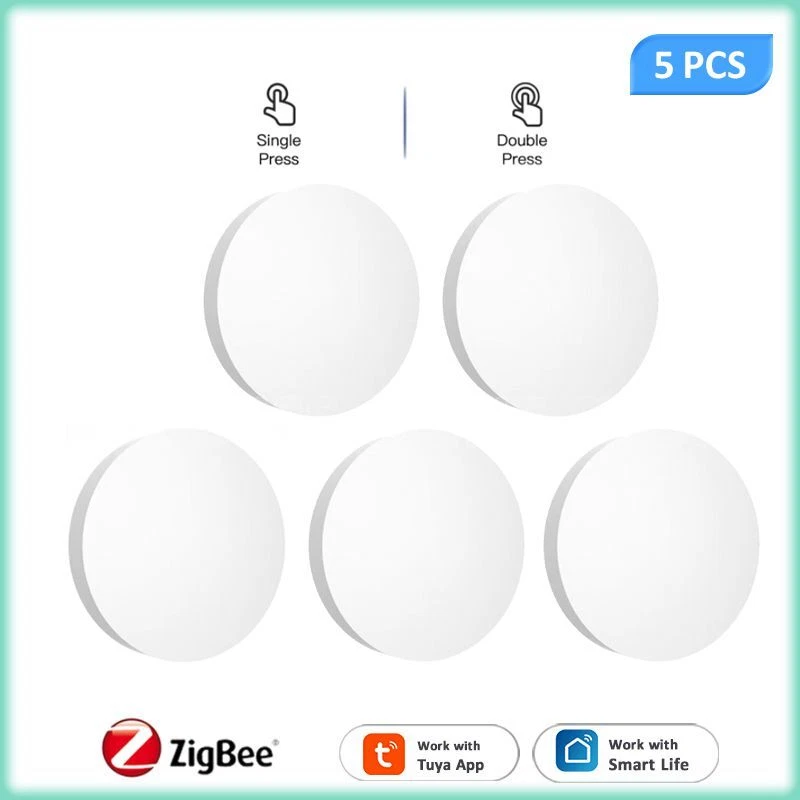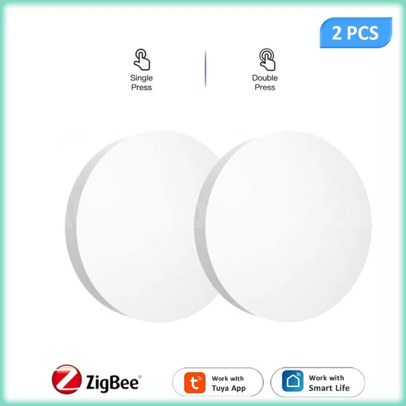 Tuya ZigBee Smart Push Button Scene Switch Wireless Remote Control on Off Key Controller Multi-scene Linkage Smart Switches Notes: Need to be used with zigbee gateway. Control tuya smart's devices. Description: 1. 【Custom/Key Operation Scene mode】 Smart scene button, matching the smart scene, one key to open the smart scene. You can freely set scenes or lights on TUYA Smart. In the scene mode, the button respectively support single click, double click scene requirements. You don't need to click the scene mode on your phone, just click the ZigBee smart remote control to open the smart scene. For example, movie mode: turn on the TV, turn off the lights in the living room, draw the curtains, turn on the TV ambient light, and turn on the audio. Simply click the remote control button to do it easily. 2. 【Can control any smart device (provided by TUYA)】 Control lights, electronics and small appliances from anywhere. 3. 【Ultra-low energy consumption, battery-powered】 the battery life can be up to 1 years, without frequent battery replacement. No wiring required. 4. 【No need to install】 Can be hung on the wall, can also be placed on the table, and you can get it at your fingertips! Specifications: Power supply: Battery CR2032 3V DC (the battery is not included in the package) Communication: Zigbee 3.0 Control distance: 25m open area Dimensions: 50mmx50mm Operating temperature:-10°C-45°C Working Humidity: <90% RH Life of battery: 1 years (General use) Package Included: 1*scene botton 1*manual