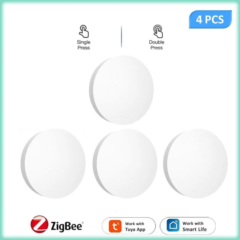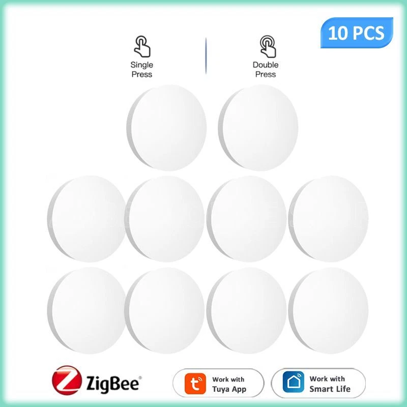 Tuya ZigBee Smart Push Button Scene Switch Wireless Remote Control on Off Key Controller Multi-scene Linkage Smart Switches Notes: Need to be used with zigbee gateway. Control tuya smart's devices. Description: 1. 【Custom/Key Operation Scene mode】 Smart scene button, matching the smart scene, one key to open the smart scene. You can freely set scenes or lights on TUYA Smart. In the scene mode, the button respectively support single click, double click scene requirements. You don't need to click the scene mode on your phone, just click the ZigBee smart remote control to open the smart scene. For example, movie mode: turn on the TV, turn off the lights in the living room, draw the curtains, turn on the TV ambient light, and turn on the audio. Simply click the remote control button to do it easily. 2. 【Can control any smart device (provided by TUYA)】 Control lights, electronics and small appliances from anywhere. 3. 【Ultra-low energy consumption, battery-powered】 the battery life can be up to 1 years, without frequent battery replacement. No wiring required. 4. 【No need to install】 Can be hung on the wall, can also be placed on the table, and you can get it at your fingertips! Specifications: Power supply: Battery CR2032 3V DC (the battery is not included in the package) Communication: Zigbee 3.0 Control distance: 25m open area Dimensions: 50mmx50mm Operating temperature:-10°C-45°C Working Humidity: <90% RH Life of battery: 1 years (General use) Package Included: 1*scene botton 1*manual