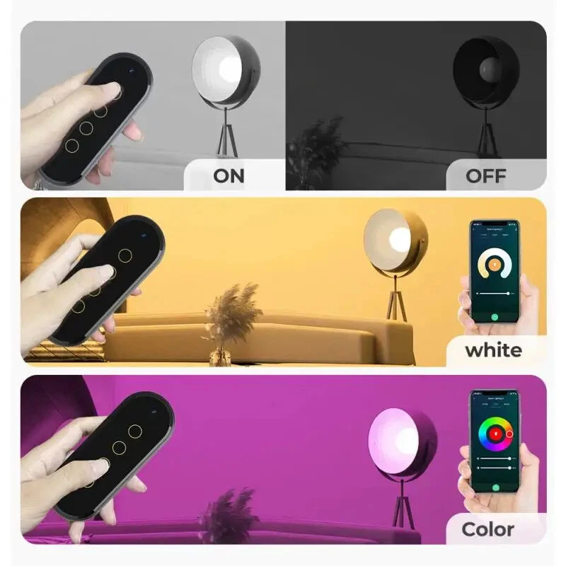 Tuya ZigBee Wireless Smart Switch 4 Gang Wireless Remote Control Touch Glass Panel Smart Home Suitable For Mulity RF433 Deveics Description: RF433 Switch: Modulation method: ASK Transmission frequency: 433,92 MHz Encoding method: Learning code EV 1527 Product size (per piece): 11.8 * 4.5cm Remote control battery: Cr2032 battery (including battery) Transmission distance: 30-50m (in open areas) Working voltage: DC 12V/27 ZigBee Switch: Battery: CR2032 battery (battery not included) Fluorescent: support Type: tuya zigbee Panel material: 2.5D tempered glass Remote control size:118*45*13.5mm Stand size: 62.5 * 50 * 23.2mm Specification: Features: RF433 Switch: DIY: The combination of remote control and wireless switch makes it more convenient and reasonable, with simple pairing and easy operation. It can turn various devices in the home into wireless remote control devices 2.5D high-definition tempered glass: In order to have a better feel, we have adopted higher cost curved tempered glass, which is more high-end. Fluorescent Function: The button will emit a faint light at night, indicating the position of each button. The faint light will not disturb the rest of family members Two fixation methods: It can be placed on the desktop freely or fixed to the wall with the built-in screws. Suitable for various application scenarios Long battery life: According to theoretical calculations, the CR2032 battery can be used for about 3 months (depending on the frequency of use) Control distance: 30~100M long distance (in open areas) Angle Adjustment: The bracket can be adjusted from 0 to 100 °, suitable for your optimal forehead angle 433MHz: Learning code (1527), with a transmission distance of 30-50m (in open spaces), brings you a new remote control experience and more convenience to your daily life. RF Pairing: Supports remote wireless control of your garage doors, electronic doors, appliances, and other remote control devices. (Only products with the same RF frequency are supported) Compact and Convenient: With a lightweight and compact design, the password key is very convenient for you to carry when going out. ZigBee Switch: 【Support zigbee wifi products】By APP setting, you can control zigbee or wifi products, including smart sockets, smart switches, smart bulbs, door magnets, temperature and humidity, etc. 【Three types of operation】Each button can be set to click, double click, long press function. 【Support a variety of function settings】Take the light bulb for example: you can set on or off, you can also set to adjust the brightness, you can also set to adjust the color. More functional operation, you can go to the APP settings 【2.5D HD Tempered Glass】 For better feel, we use the more expensive curved tempered glass, more high-end. 【Fluorescent function】The button will emit a faint bright light at night to indicate the location of each button, while the faint bright light will not disturb the rest of the family 【 Two fixing methods】Can be placed on the desktop at will or fixed on the wall using the screws that come with it. Suitable for various application scenarios 【Long battery life] using CR2032 batteries, after theoretical calculations can be used for about 3 months (specific and frequency of use has a relationship) 【Lanyard hole design】In order to prevent the remote control from being lost, it can be used with our Bluetooth anti-loss device to find the remote control more quickly (note that the anti-loss device needs to be purchased separately) 【Angle adjustment】The bracket can be adjusted from 0-100° to suit your best angle 【Share function】 share with family to control together 【Group function】 can close or open the group of devices together, more convenient Package Included: 1 set * (1 switch, 1 stand, 2 screws, 2 spiral tubes)