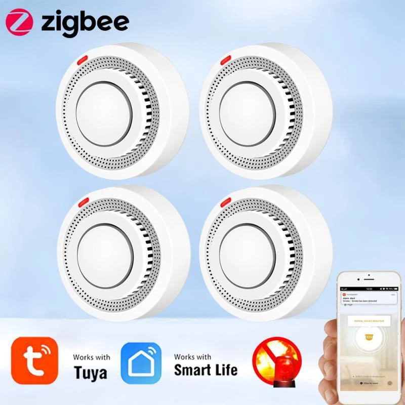 Tuya Zigbee Smart Smoke Detector Smart Life APP Remote Control Fire Alarm Home Security Smoke Sensor Work With Zigbee Gateway Description: 1.Tuya Smart ZigBee Smoke Detector:A Tuya ZigBee Wireless Gateway Hub is a must to work with the smoke detector sensor,as well as a variety of ZigBee smart products. 2.Professional design, fast perception of fire supported that ensures high sensitivity of smoke and temperature, effectively reduce false positive rate and make the police more accurate. 3.App Push Notifications and Control:Compatible with Smart Life and Tuya App enables the timely discovery of danger of fire or smoke and real- time notifications to your smart phone. 4.Low power design and long battery life for this ZigBee new version with low voltage monitoring prompt function available. 5.Real-time Voice Alarm Prompt with Wide Range:This smart smoke detector owns the wide monitoring range of3m ahead,and it will intelligently and quickly issue more than 85dB alarm sound and push notification to you App automatically. Specifications: Product name: Zigbee Smoke Alarm Input voltage: DC3V LR03 Quiescent current: ≤ 35uA Alarm current: ≤100mA Battery: 2*1.5V AA battery (Not include) Low voltage and undervoltage: ≤2.4V Alarm sound pressure: 80db/1m Wireless Technology: ZigBee Transmission Frequency: 2 .4GHz Detection range: 20 square meter Installation method: ceiling installation Working temperature: -10°C~ 50°C Working humidity: up to 95%RH Material: Plastic Size: 80x38mm/3.15x1.50in Color: White Package Included: 1*Zigbee smoke detector 1*User's Manual Notes: Notes: This product needs to be used with ZigBee3.0 gateway.